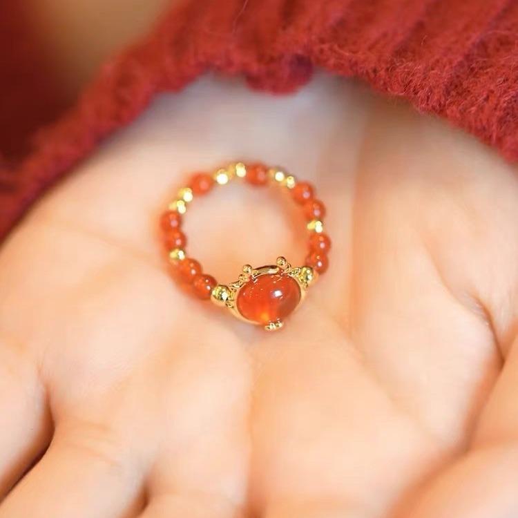 财运戒指女旺财戒指偏财戒指中指戒指女招财龙年指环红色高级