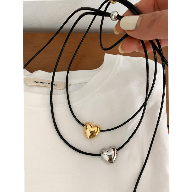 金属爱心皮革项链女韩国小众设计复古个性百搭气质网红颈链锁骨链