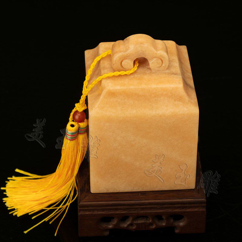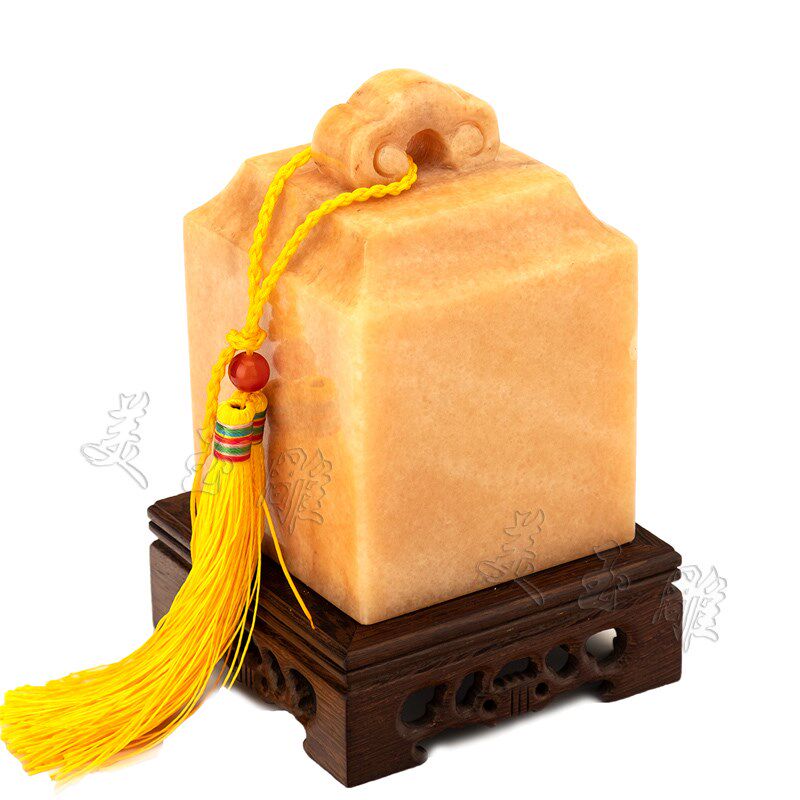 天然黄玉石如意印章玉玺摆件包刻字财印官印玄关酒柜送礼工艺品