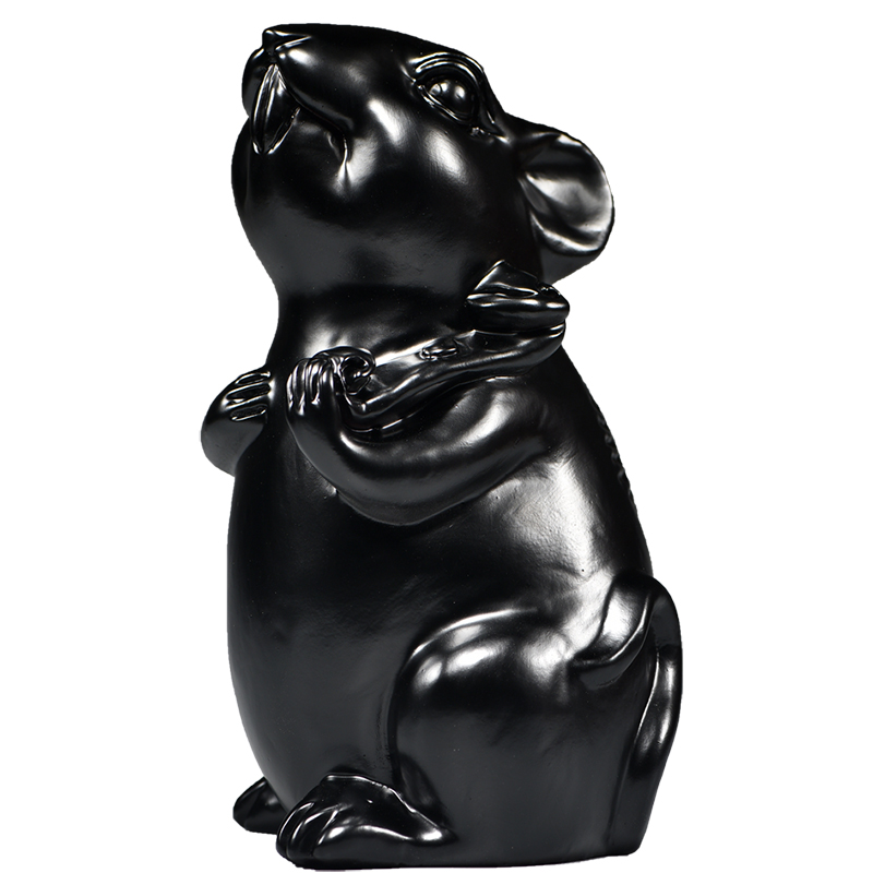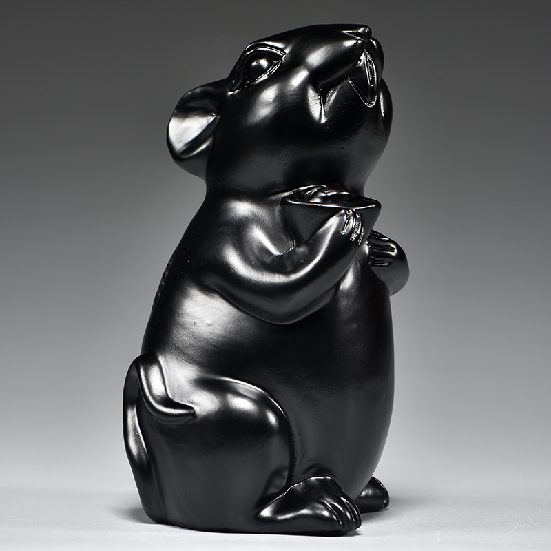 厂家黑色老鼠摆件实木雕刻十二生肖纯黑色鼠客厅电UU视柜补角装饰