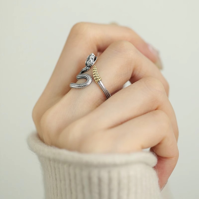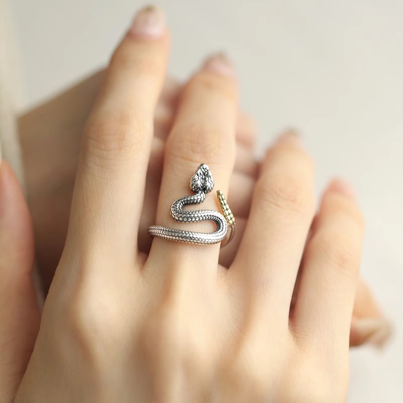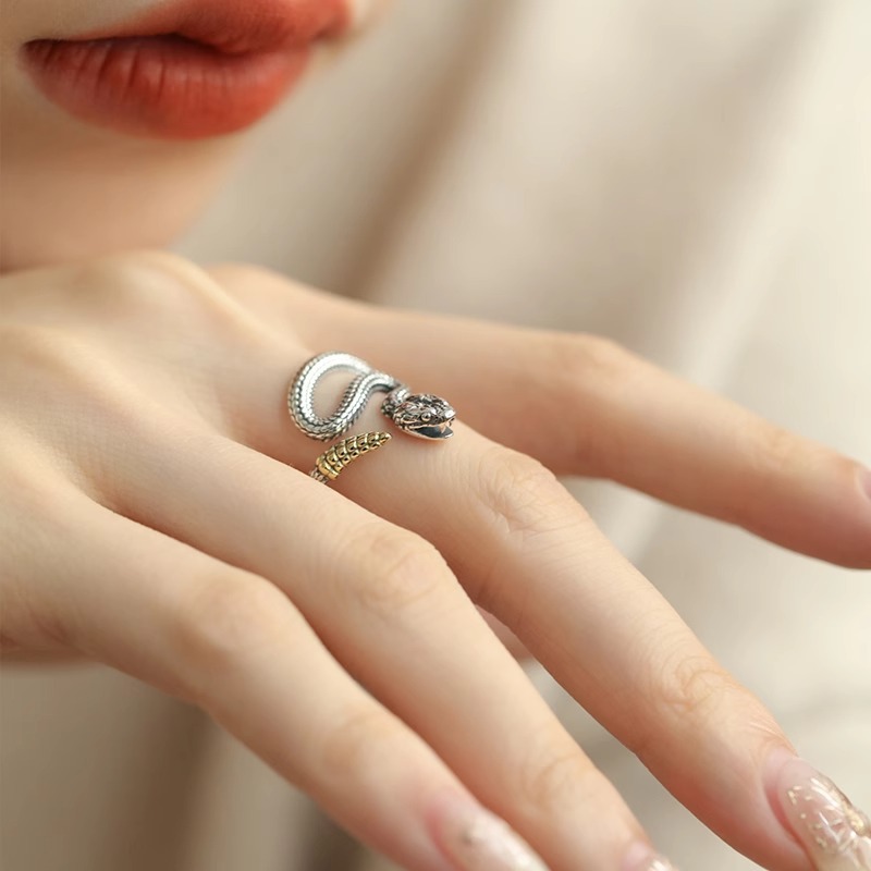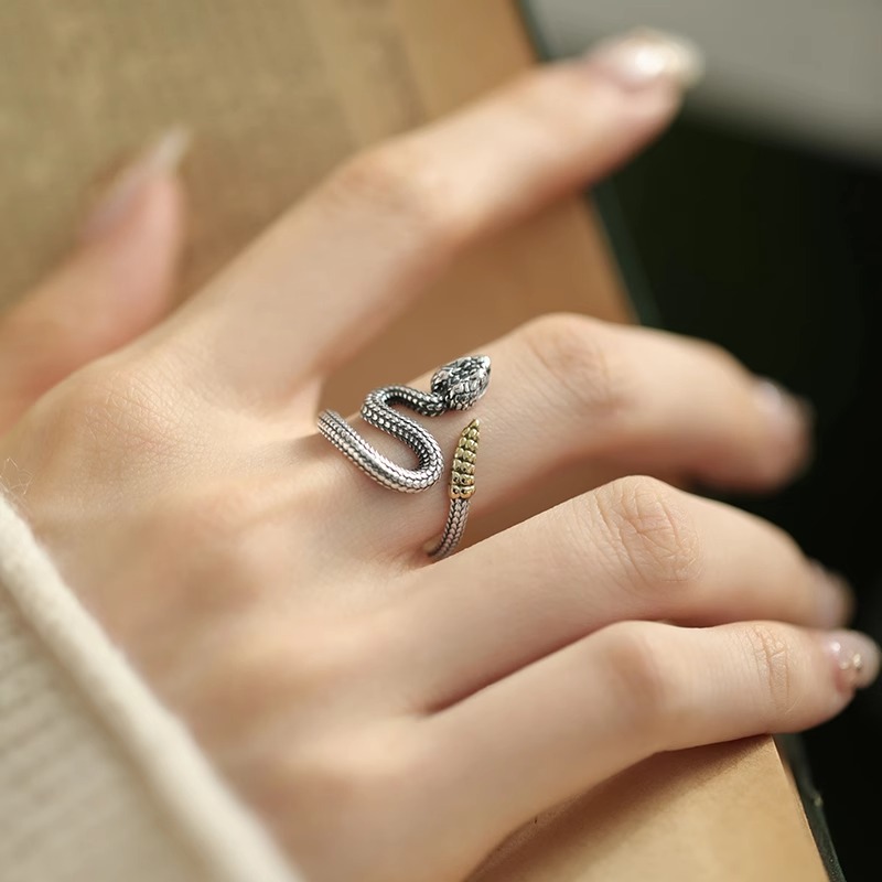 一恋新中式复古灵蛇戒指女做旧民族风国潮个性缠绕开口指环ins食