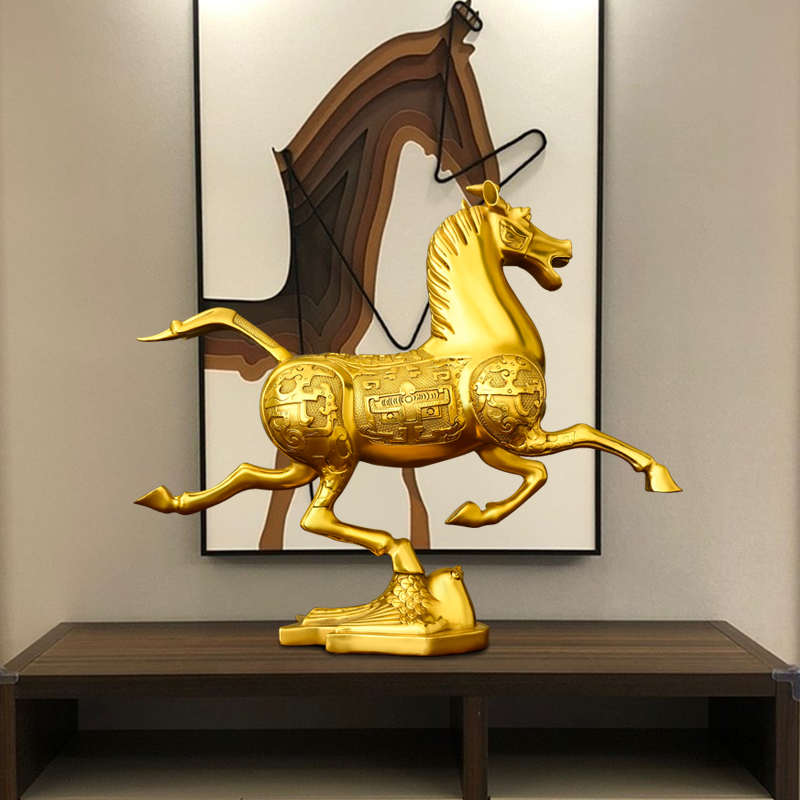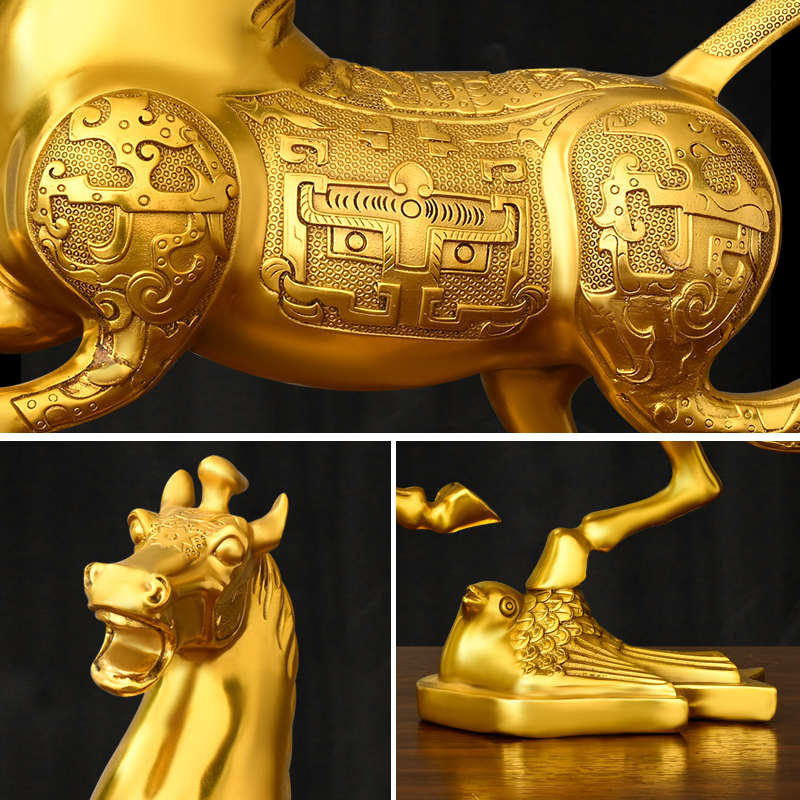 黄铜马踏飞燕摆件生肖马铜马家居店铺办公室装饰品送礼马到成功