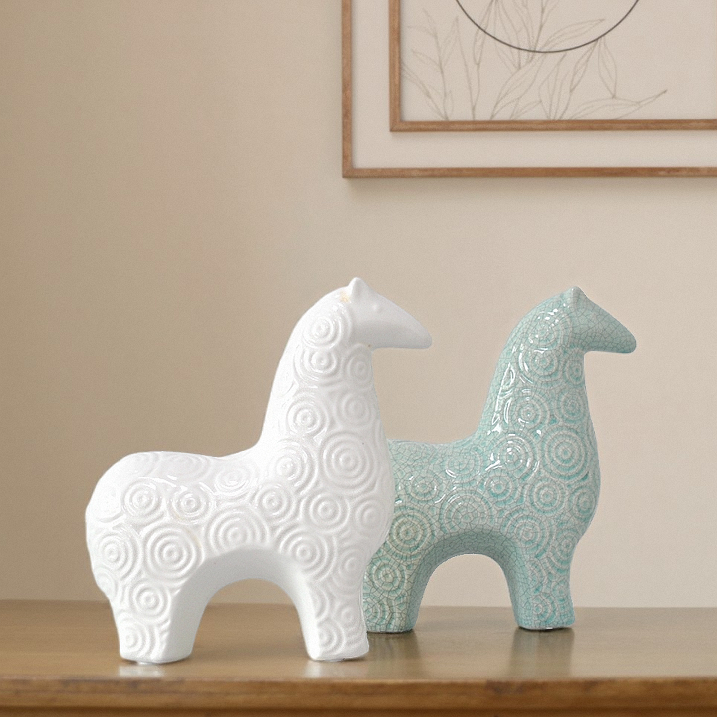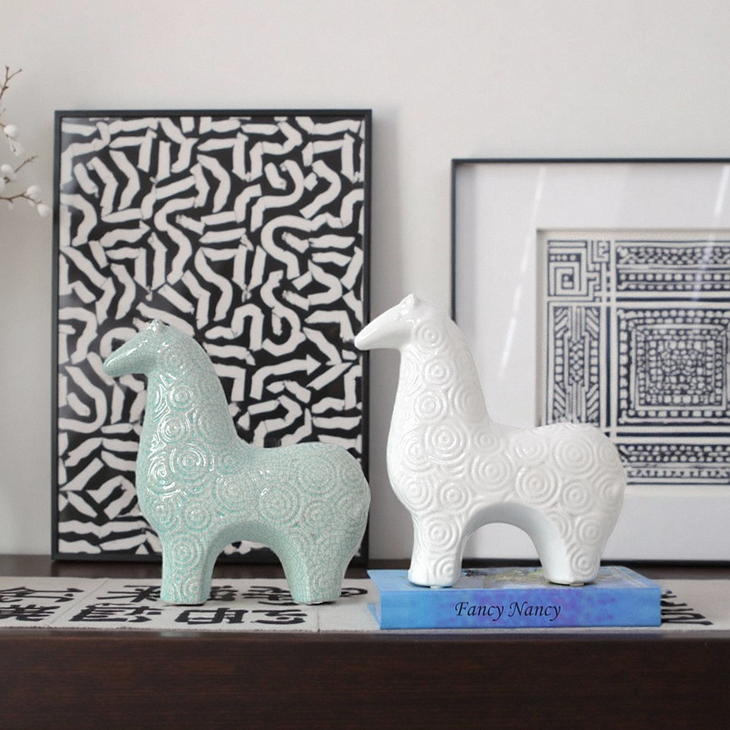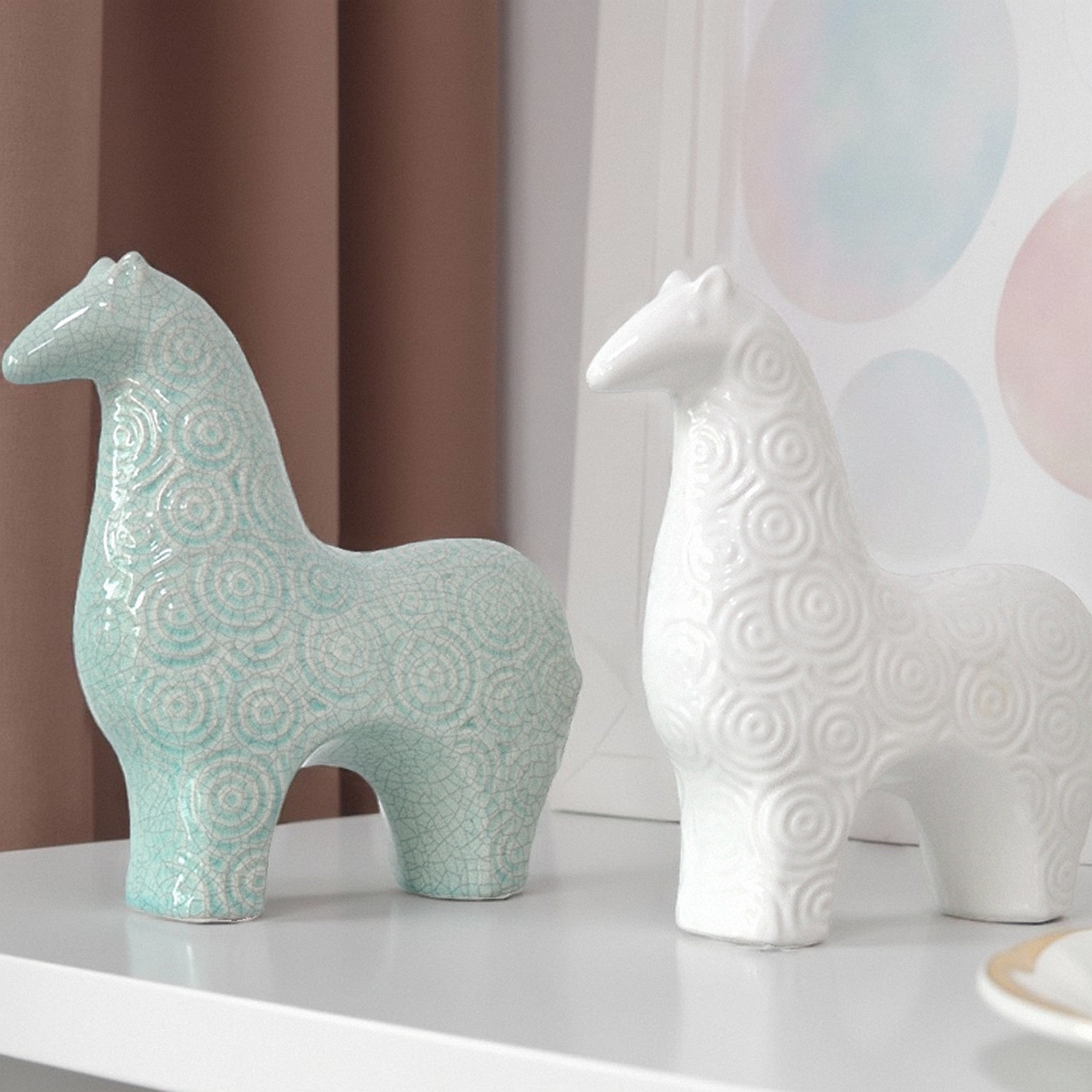 极简后现代时尚北欧陶瓷淡蓝白色抽象马摆件家居摆台软装陈设饰品