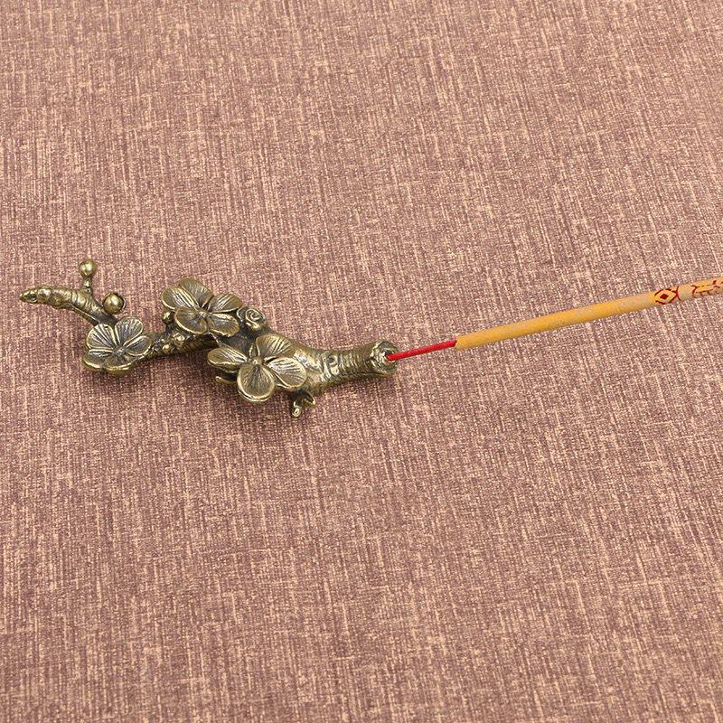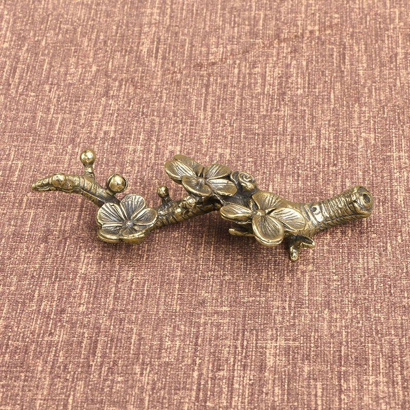 回流实心黄铜创意梅花香插复古包浆梅花树枝笔架铜艺小摆件小铜件