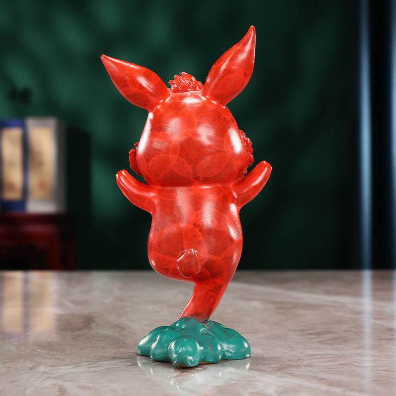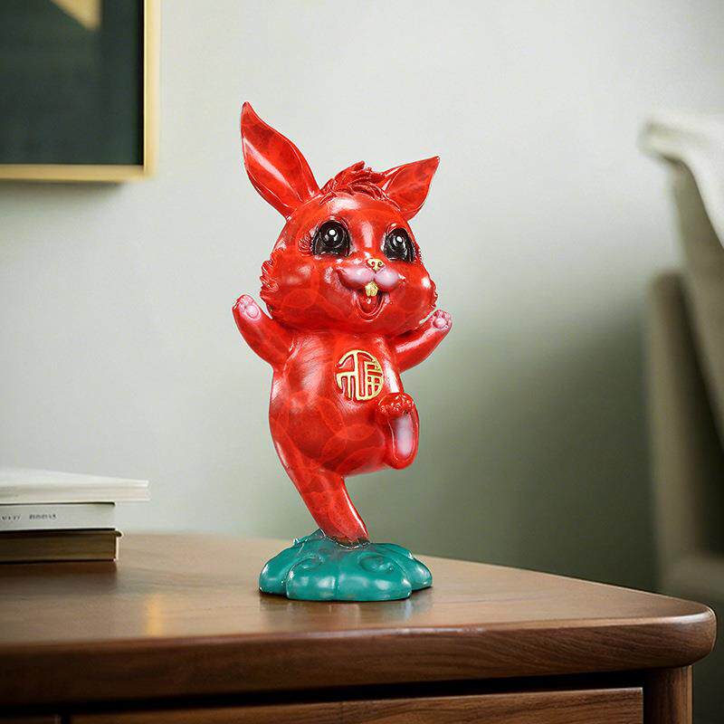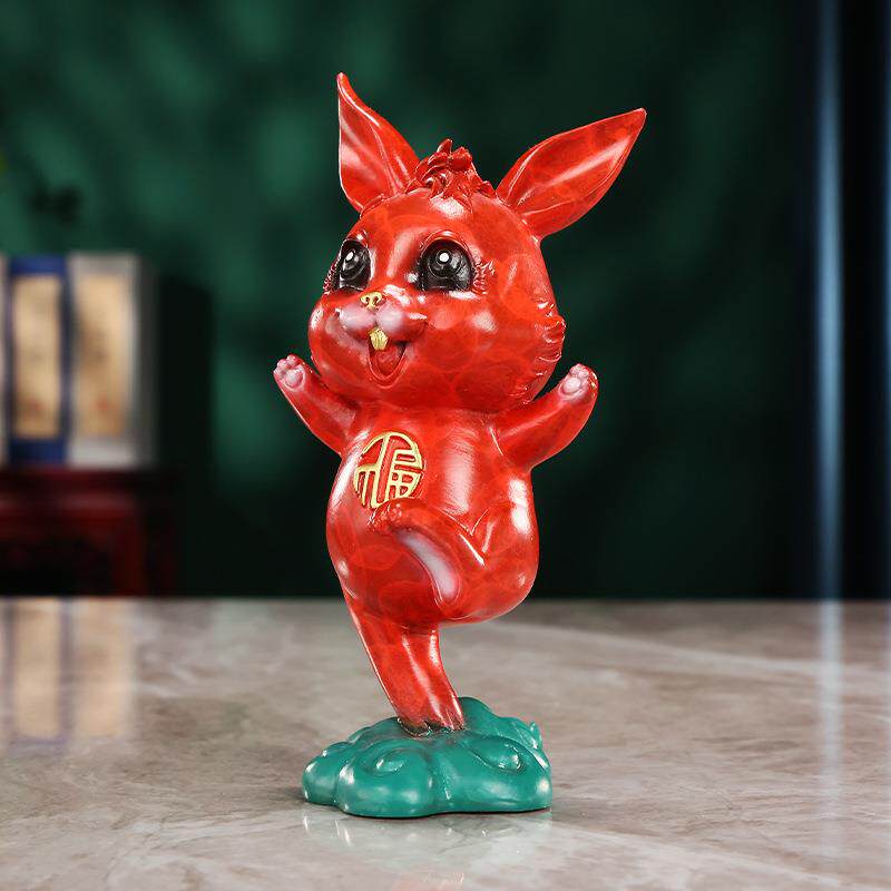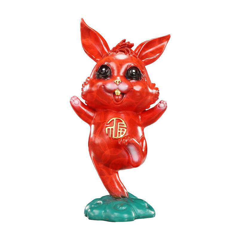 彩铜兔子摆件彩绘红色兔子可爱福兔客厅桌面装饰小兔子摆件工艺品