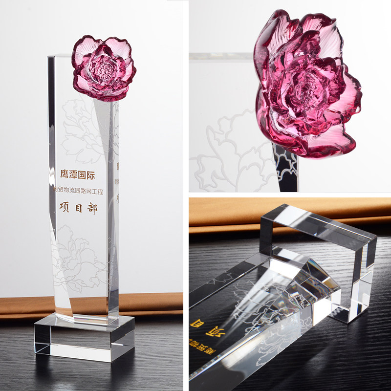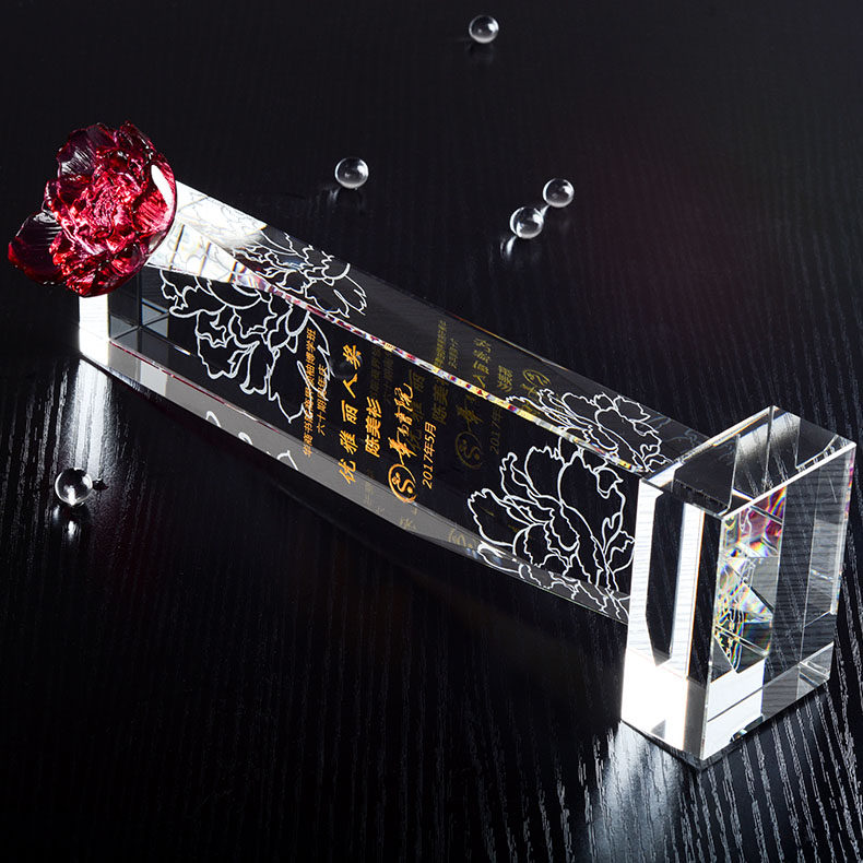 护士节母亲节水晶琉璃奖杯定制红色花朵创意丽人奖杯刻字定做
