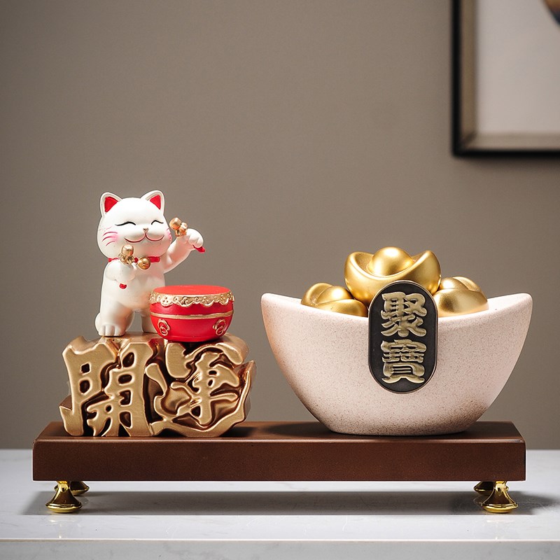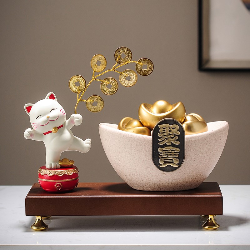 创意家居元宝聚宝盆摆件家用客厅酒柜玄关店铺招财猫装饰开业礼品