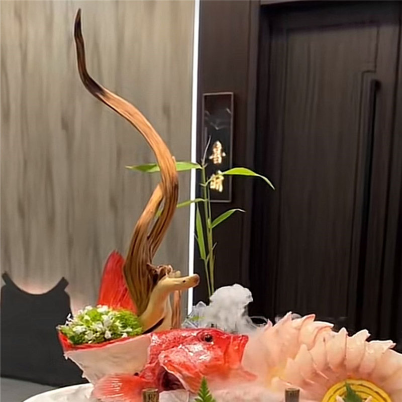海鲜姿造创意装饰品天然弯树枝树根刺身三文鱼乾树枝迎客松枯树枝