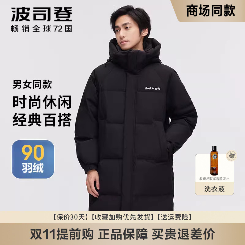 波司登2025新款男女同款羽绒服连帽时尚花版情侣款冬羽绒服中长款