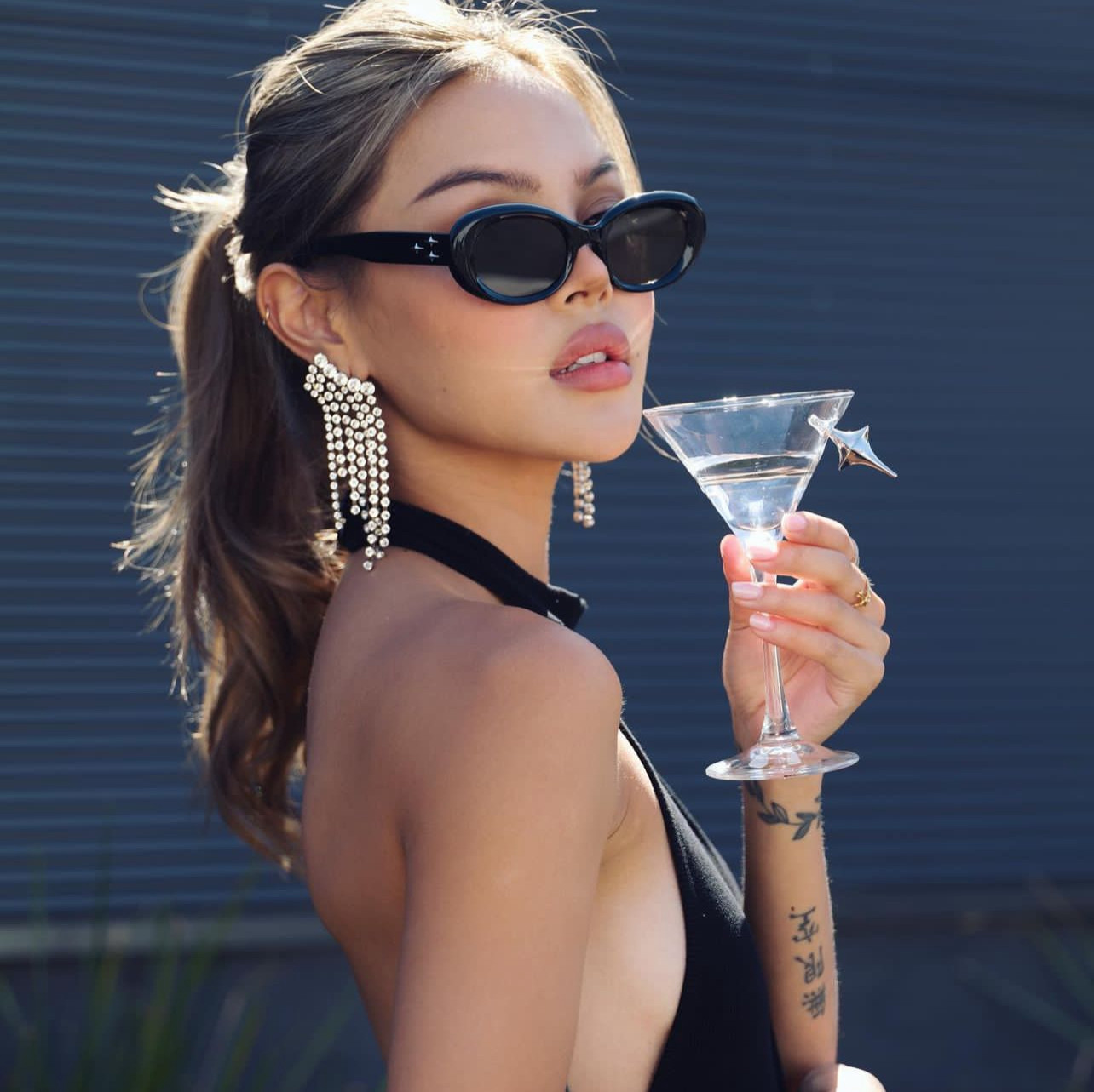 2023新款椭圆黑色猫眼墨镜女款圆脸高级感美式复古辣妹gm太阳眼镜