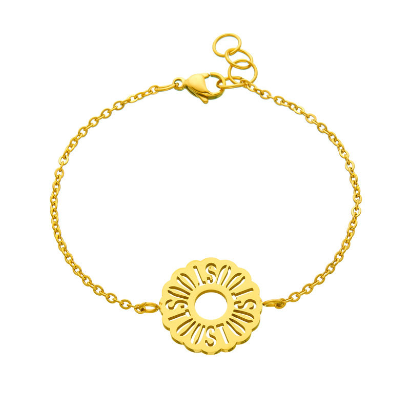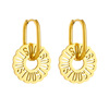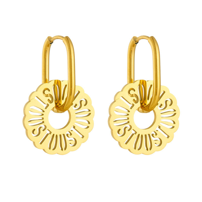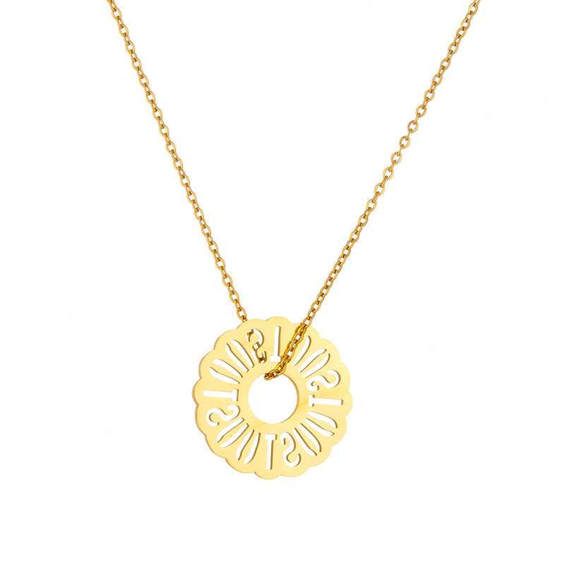 熊家钛钢圆牌字母欧美潮流简约平面抛光女款三件套耳钉项链吊坠