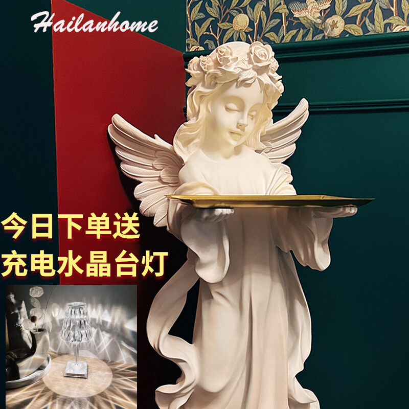 欧式天使托盘复古大n型迎宾落地沙发旁摆件客厅卧室家居软装工艺
