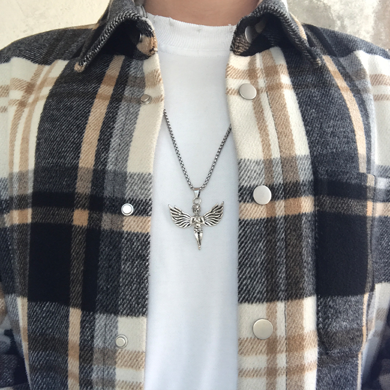 CAIMOU天使项链不掉色新款男女潮小众设计感吊坠百搭嘻哈锁骨链子