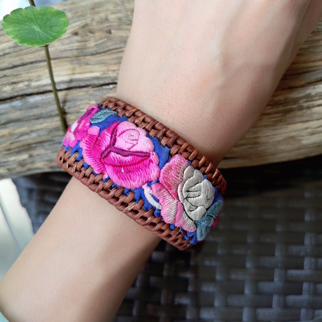 民族风独家手工老绣片改良加工藤编手镯 可收藏
