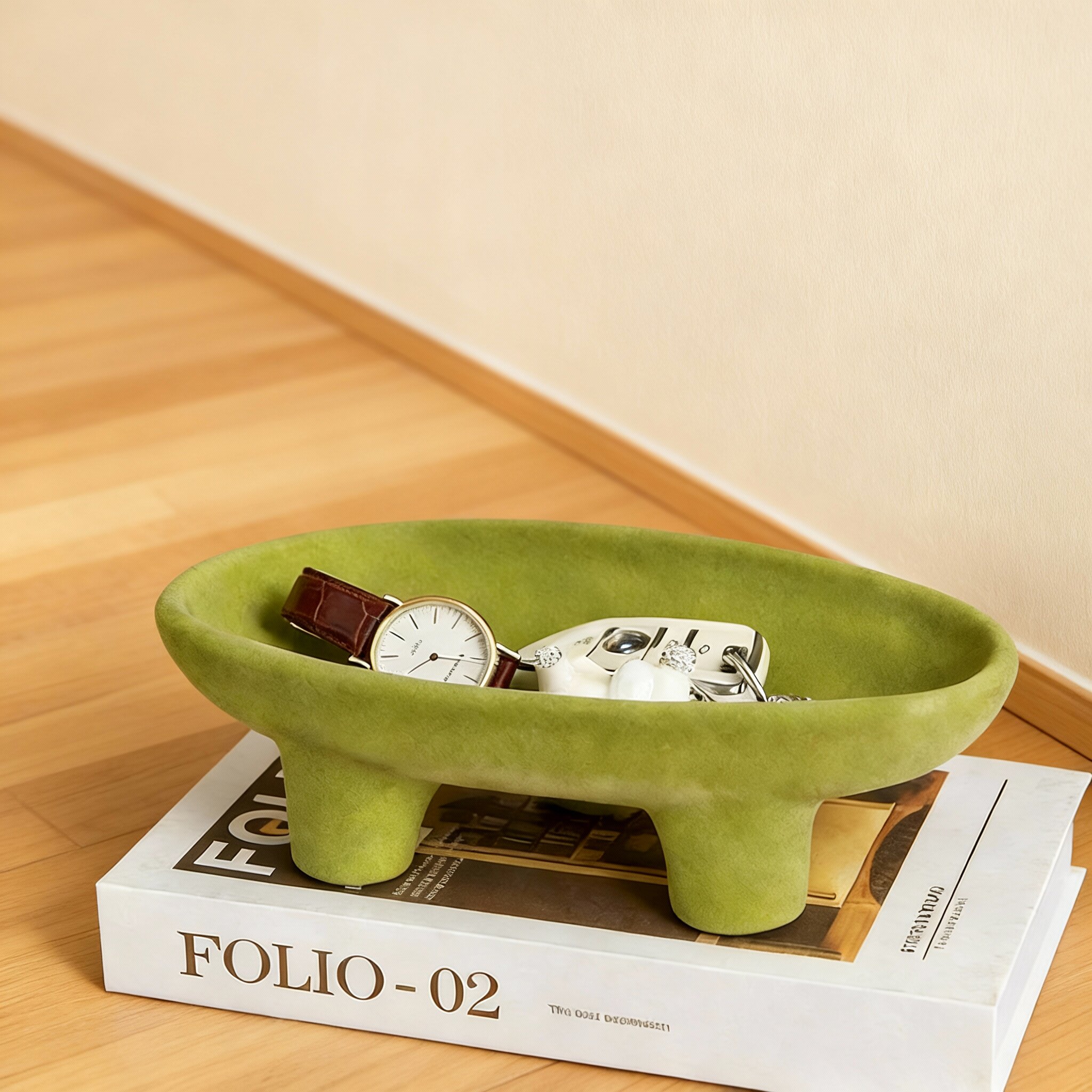 轻奢风绿色陶瓷收纳盘客厅沙发装饰摆件大容量复古托盘