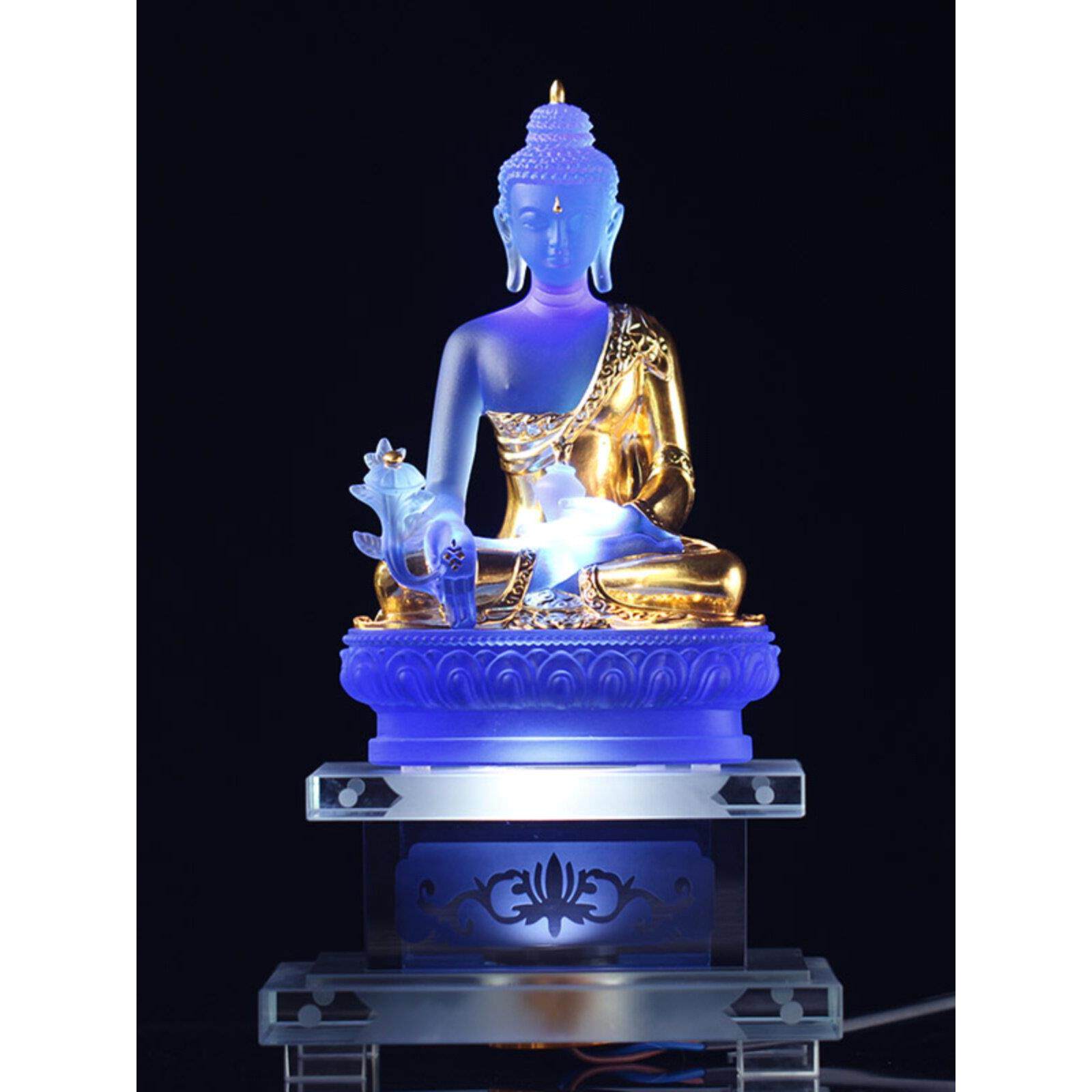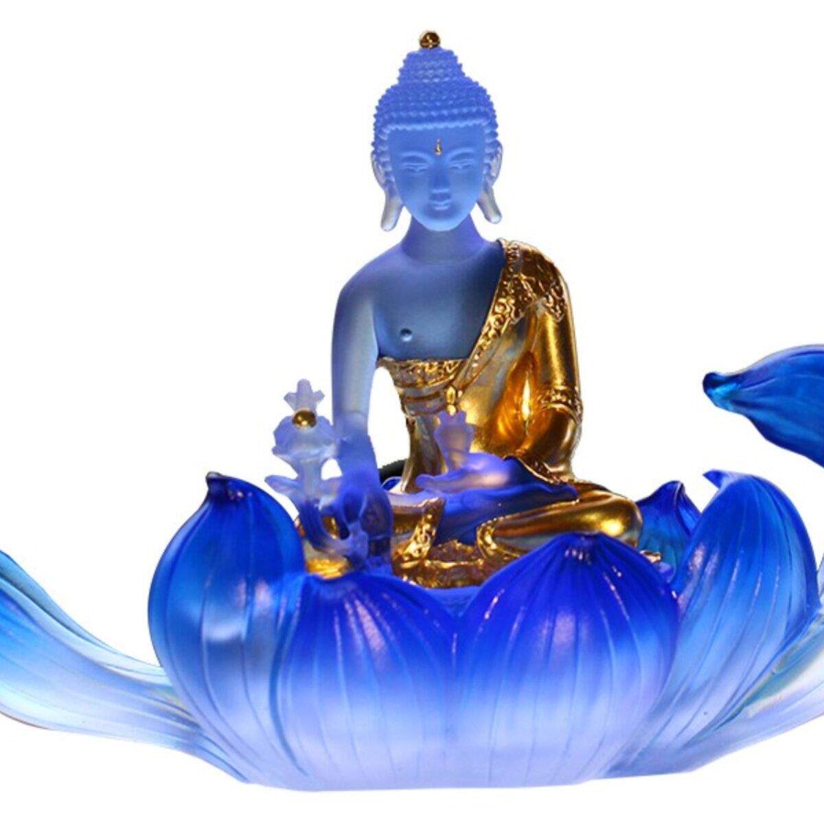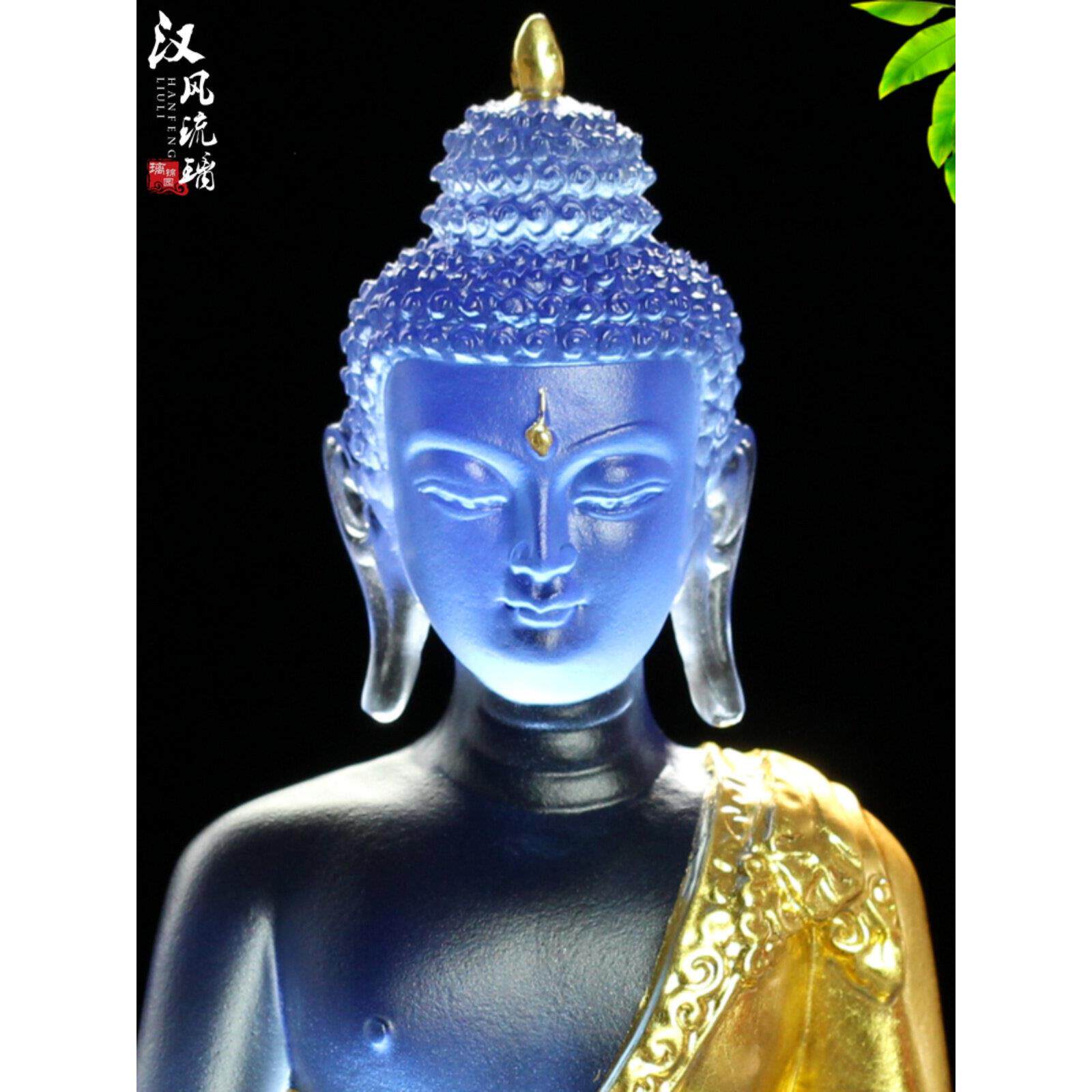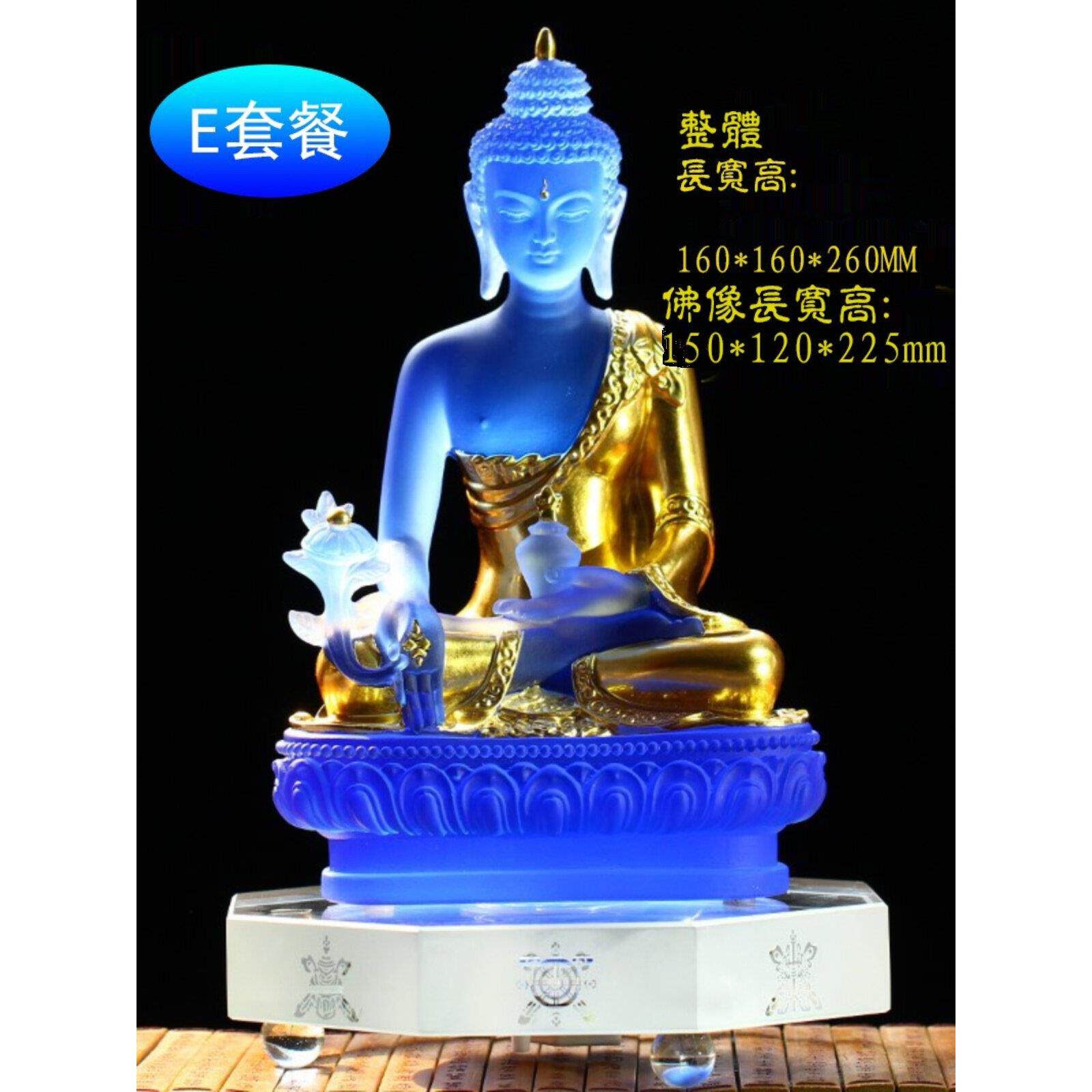 蓝色古法真琉璃药师佛供奉摆件家用保平安药师琉璃光如来鎏金佛像