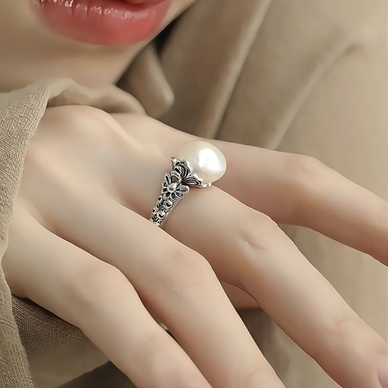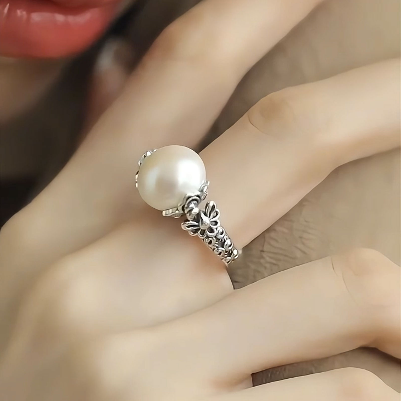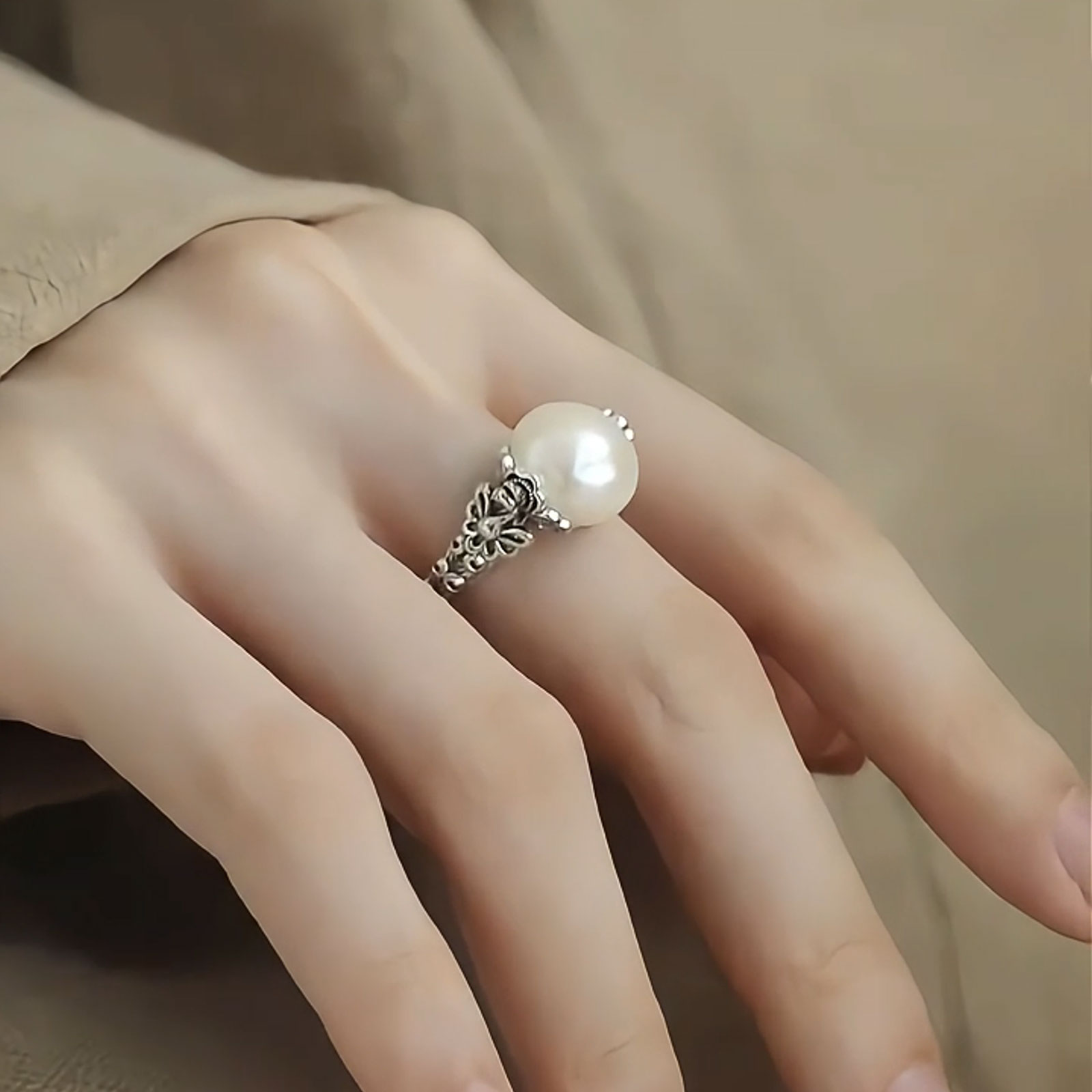 格桑花珍珠戒指925银女新中式国风小众轻奢镂空活口可调节食指戒
