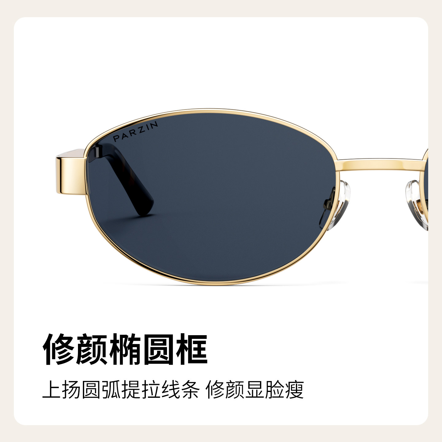 帕森千金镜周也同款金属框椭圆复古墨镜女老钱风太阳镜防晒PZ8387