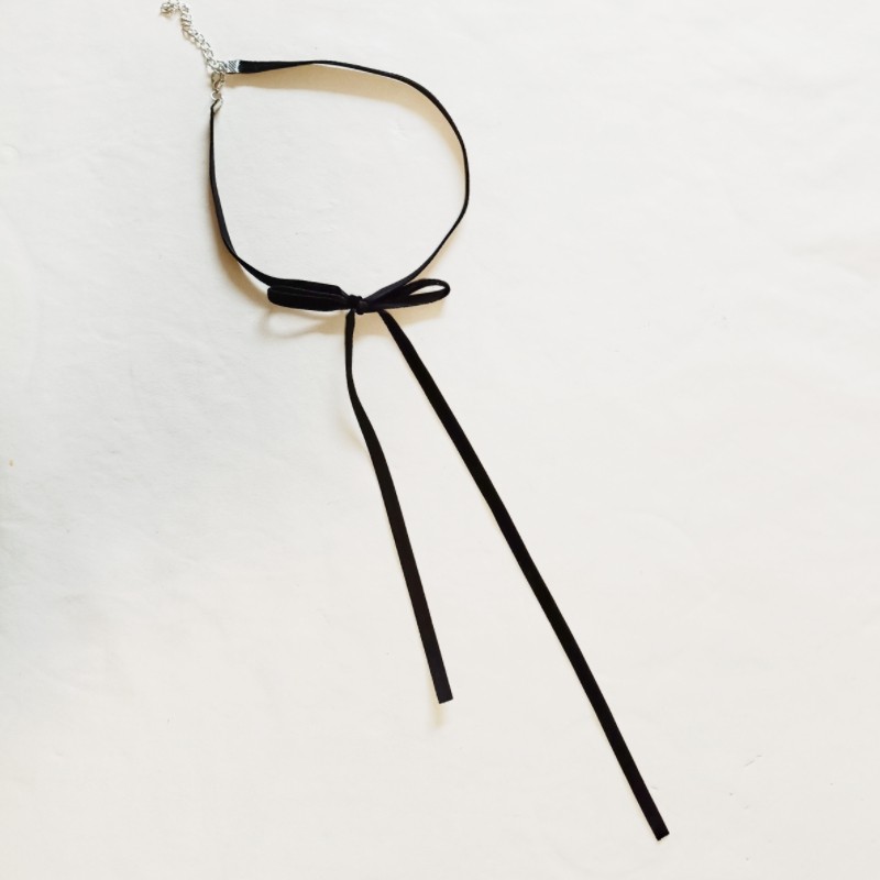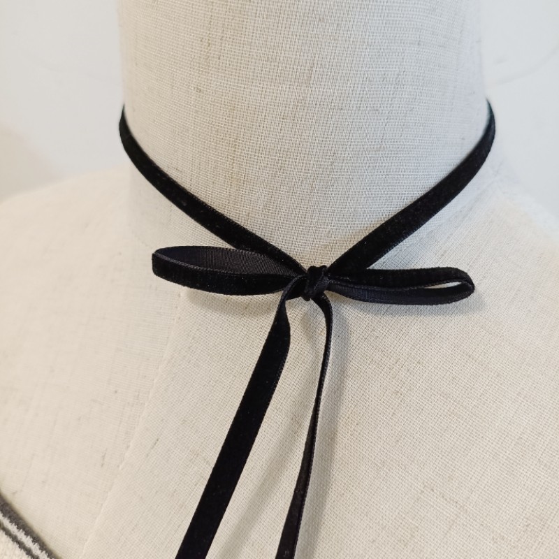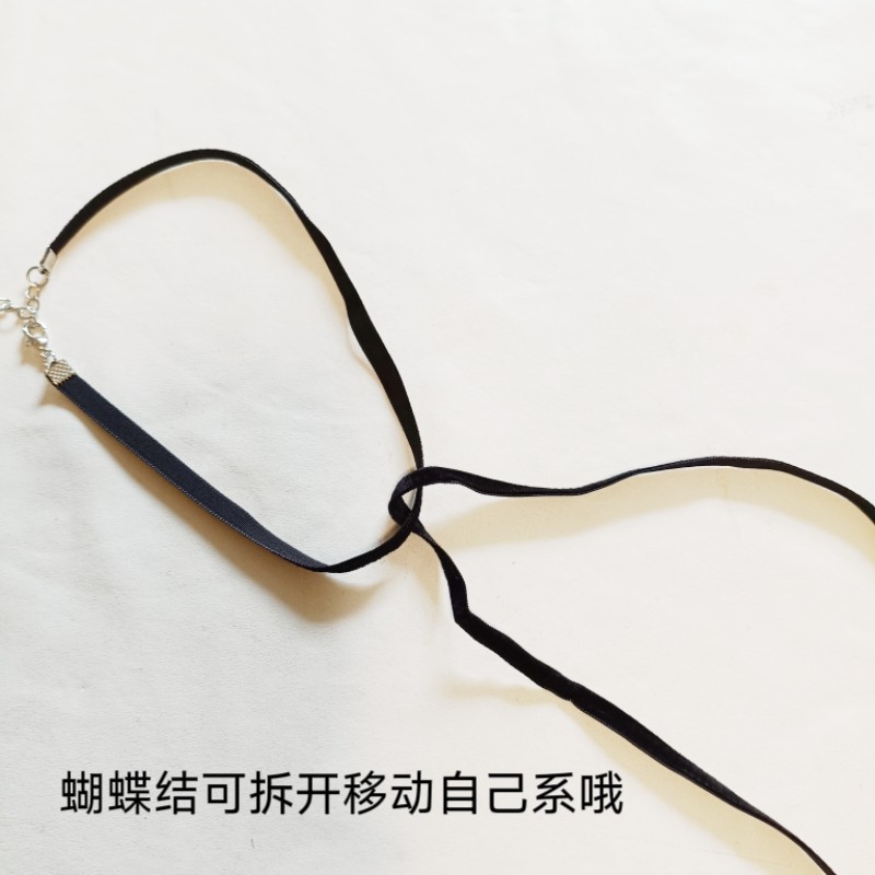 原创设计黑色丝绒脖子装饰品气质蝴蝶结系带锁骨项链颈部配饰颈链
