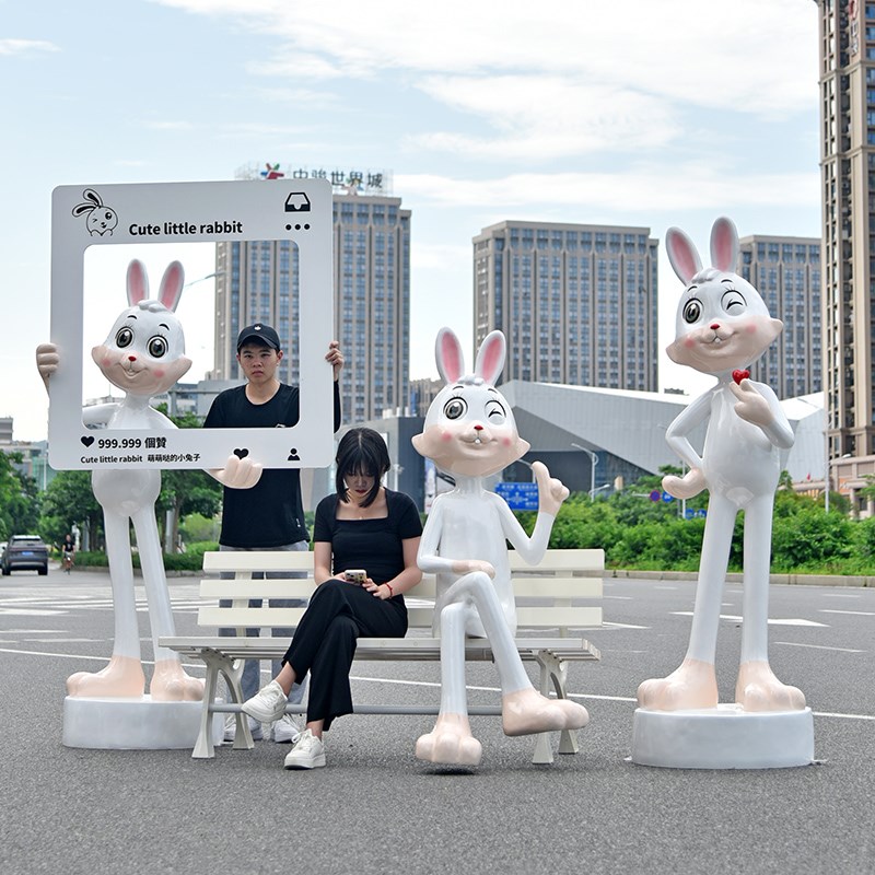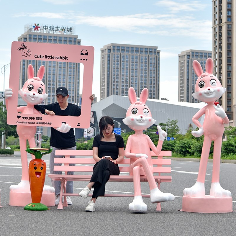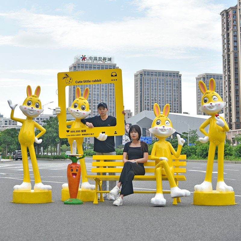 卡通兔子雕塑玻璃钢大摆件户外网红商场售楼O部幼儿园美陈装饰小