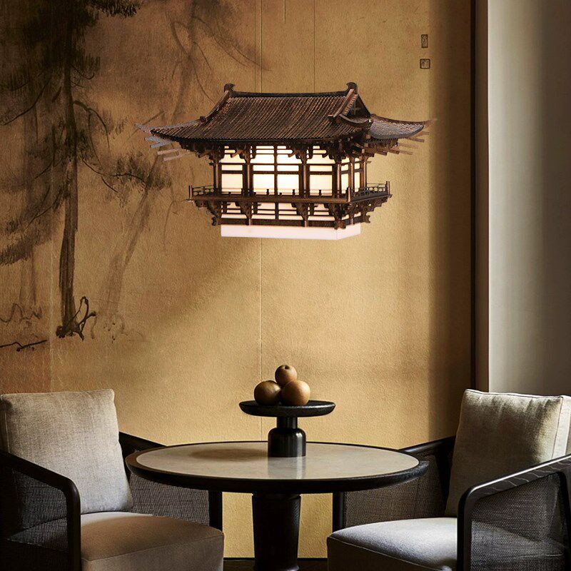 中式古建筑木雕亭子手工灯具品酒店大厅高级饭厅民宿成品吊饰摆件