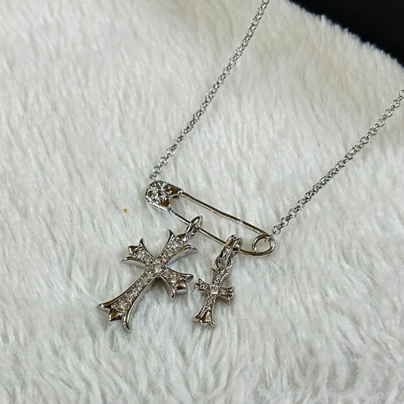 剋罗伈欧阳娜娜同款带钻双十字架别针项链轻奢小众高级感锁骨链