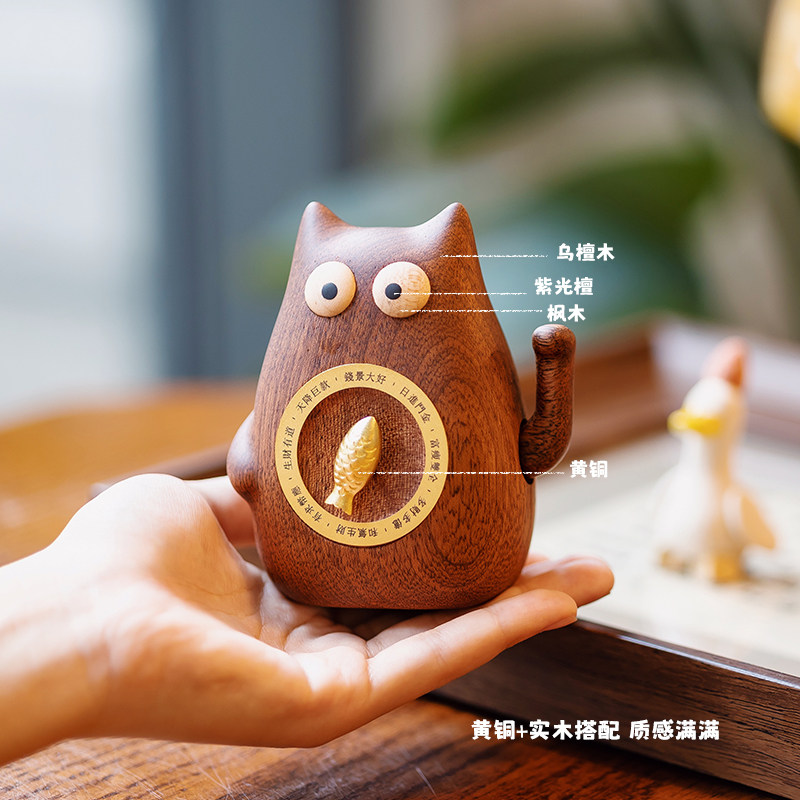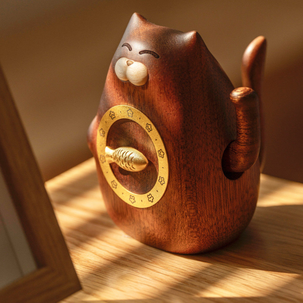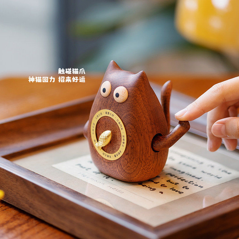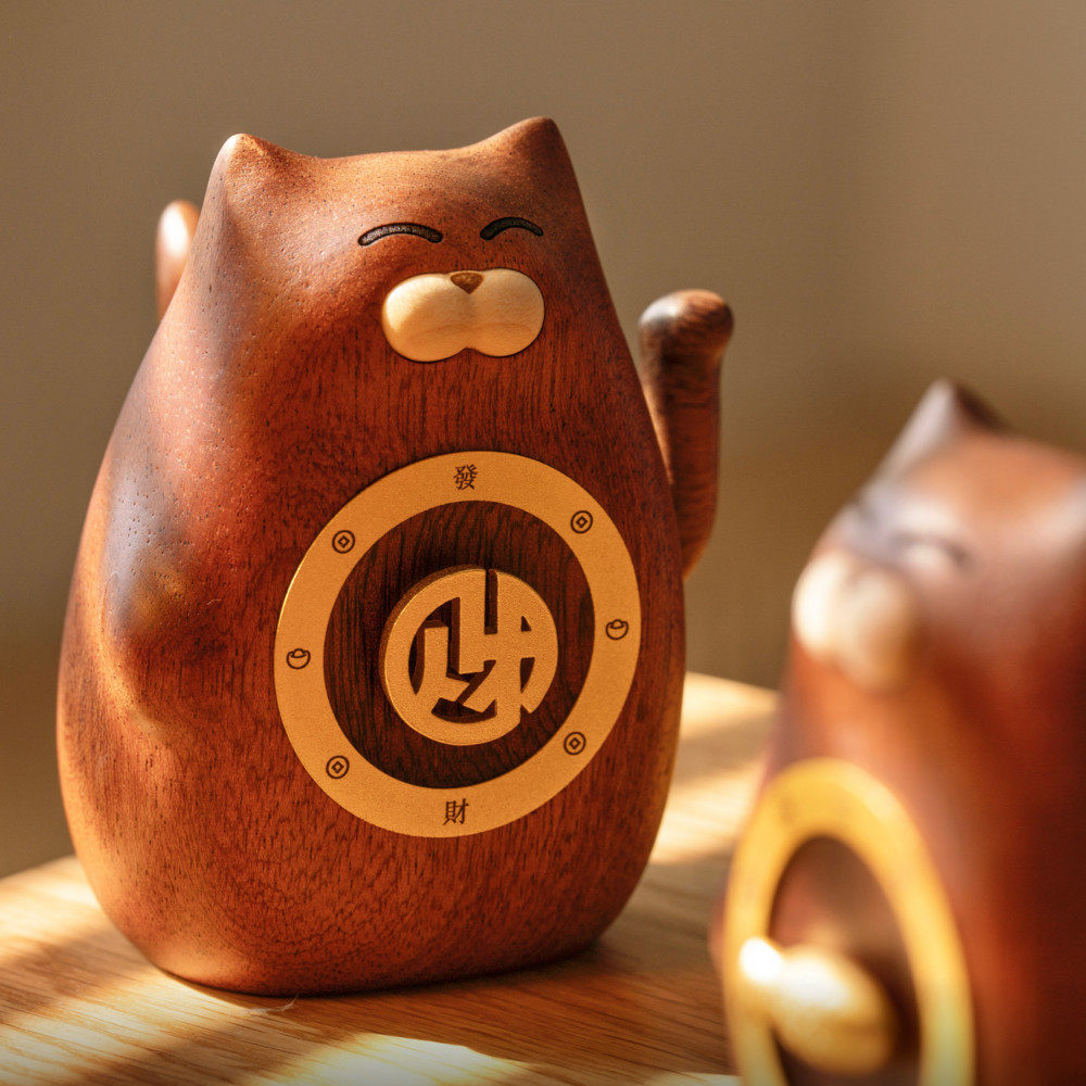 实木招财猫时来运转猫桌面装饰祈福摆件解压治愈好物生日乔迁礼物