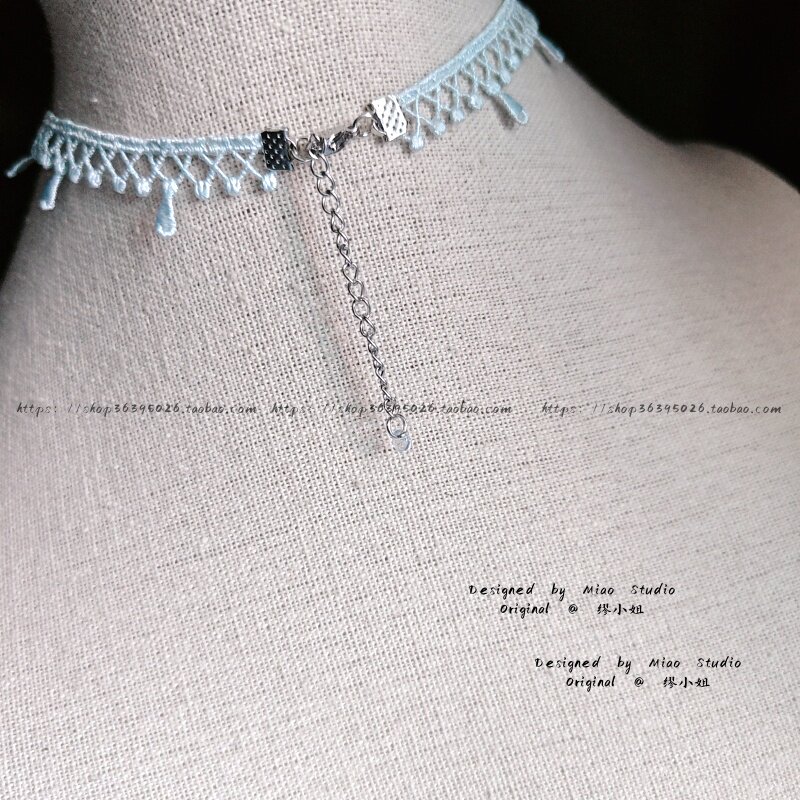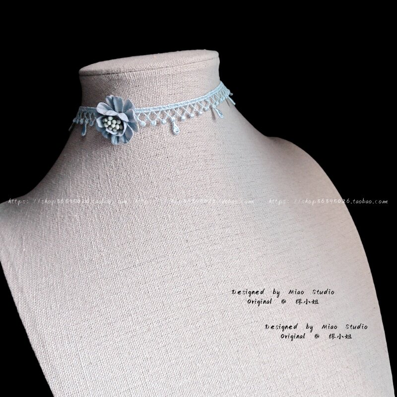 不褪色蕾丝choker蓝色玫瑰花项链配饰颈链公主小众设计感简约气质