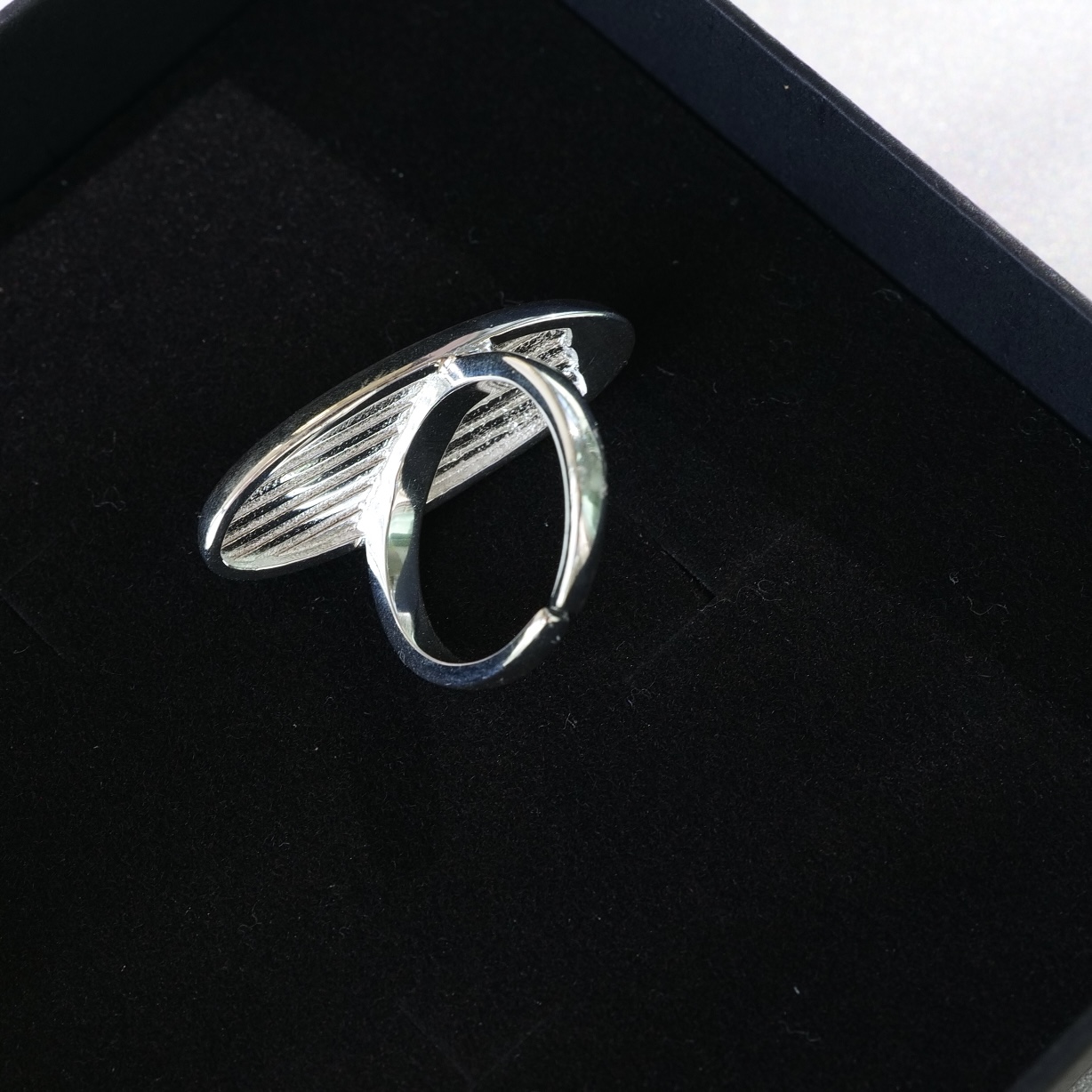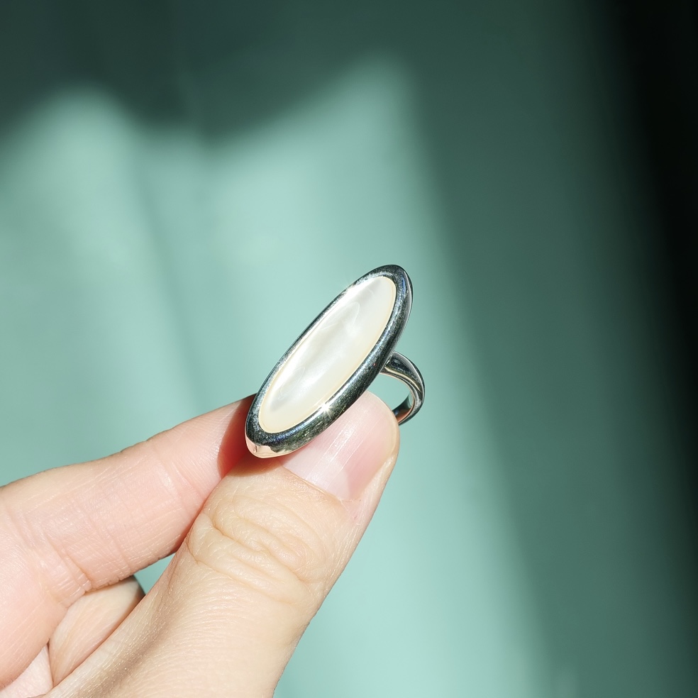 清冷铠甲。精致天然白母贝壳s925纯银斜向开口戒指环时髦个性小众