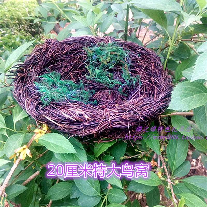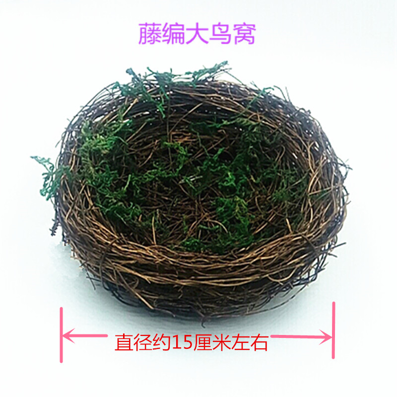 藤编鸟窝仿真鸟巢干草鸟屋子泡沫鸟蛋仿小鸟家居绿植景观树装饰品