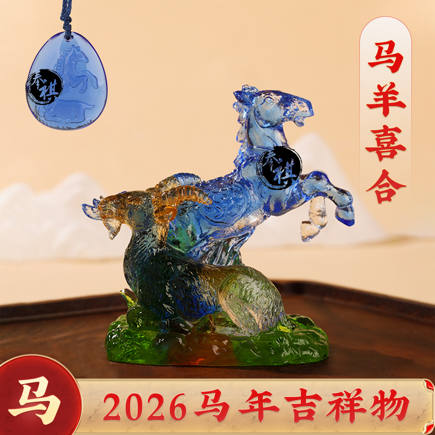 宋韶光2026马年吉祥物生肖鼠牛虎兔龙蛇马羊猴鸡狗猪琉璃摆件吊坠