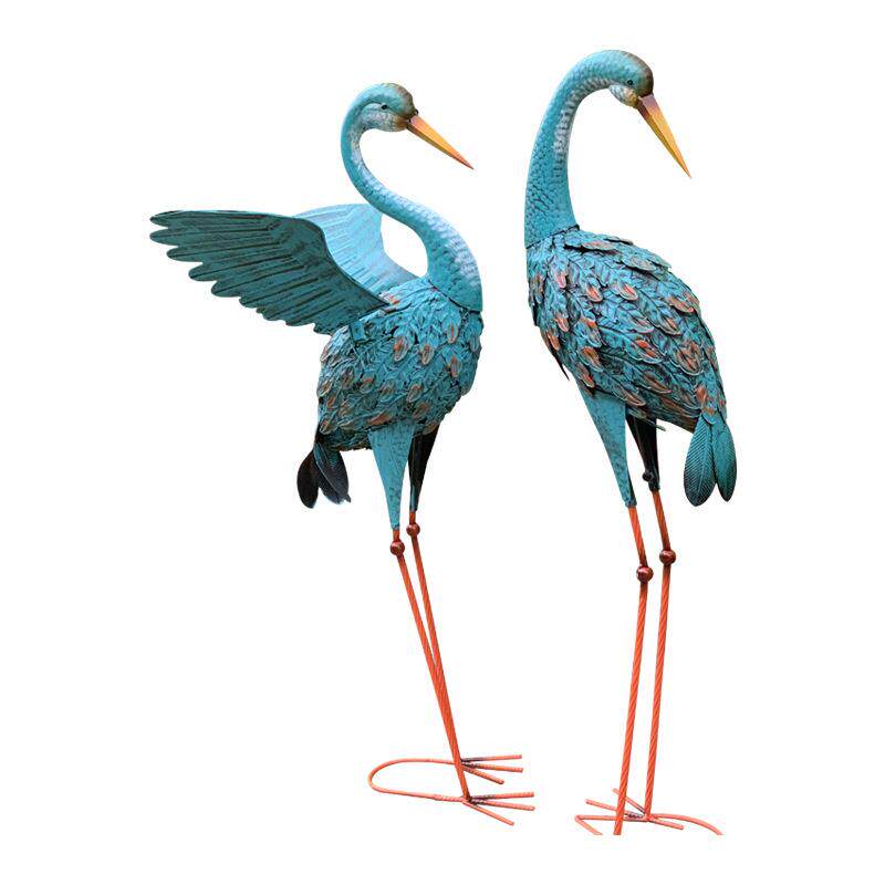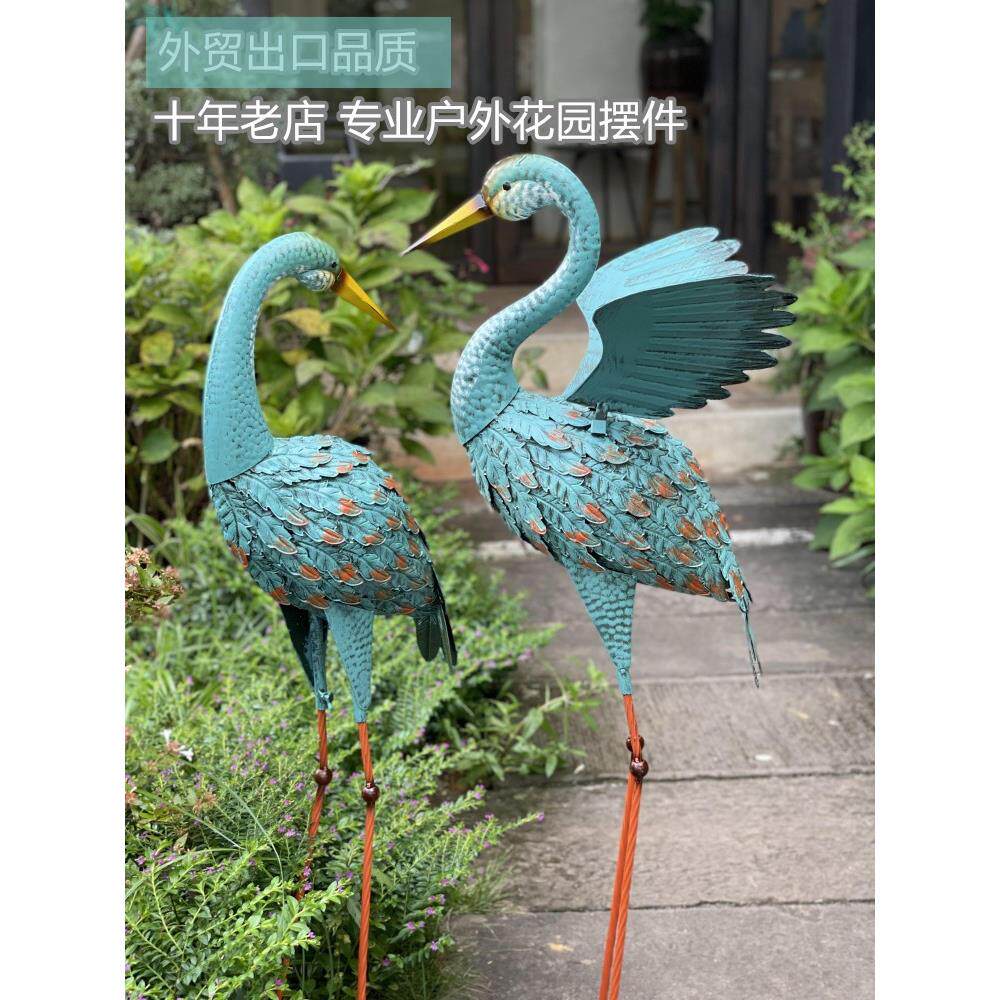 蓝色铁艺孔雀仙鹤园艺摆件庭院别墅花园杂货装饰阳台仿真动物造景