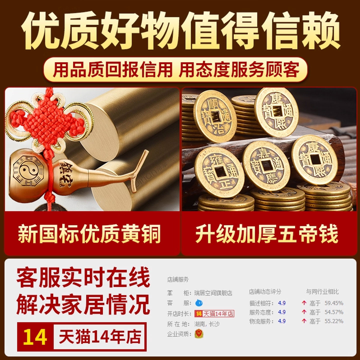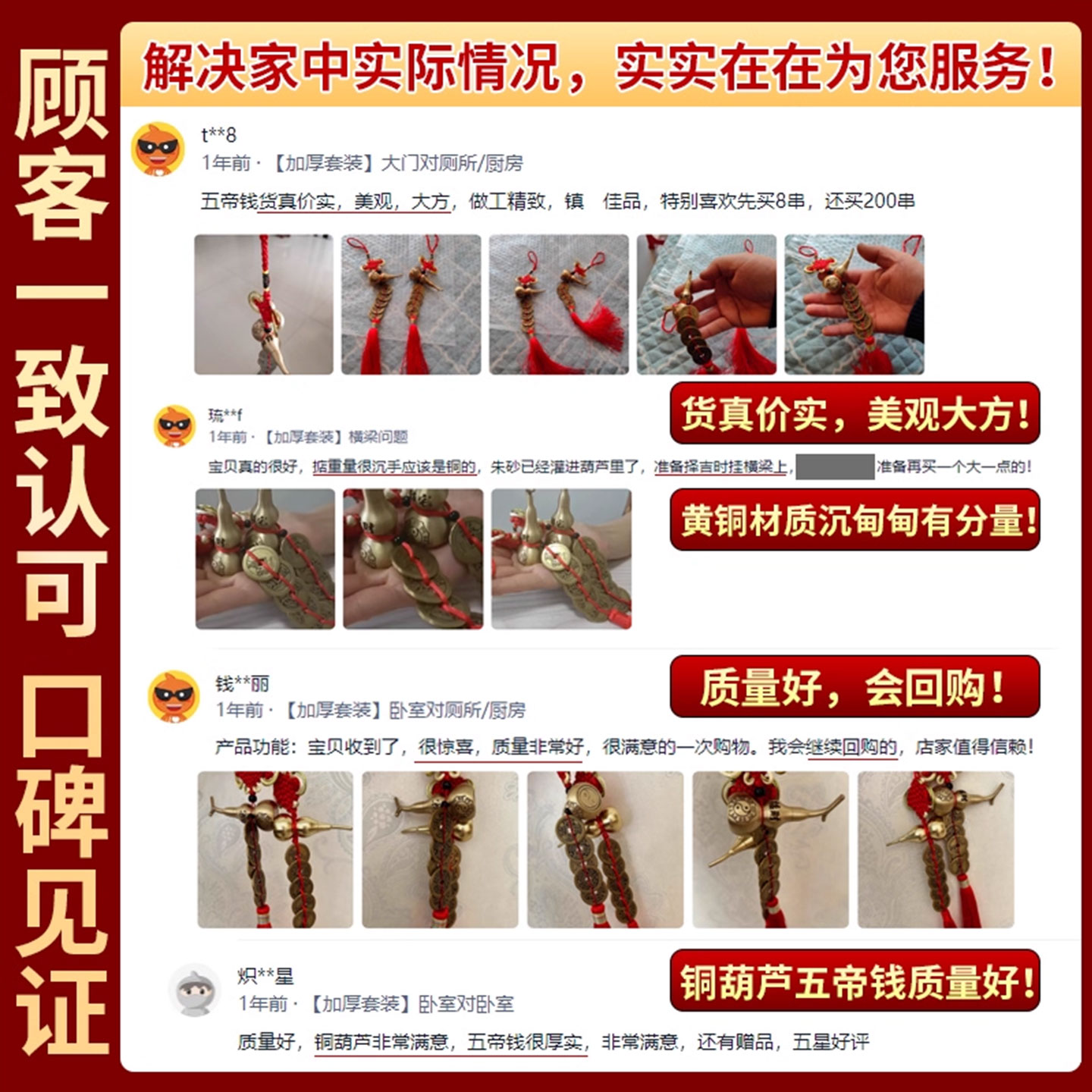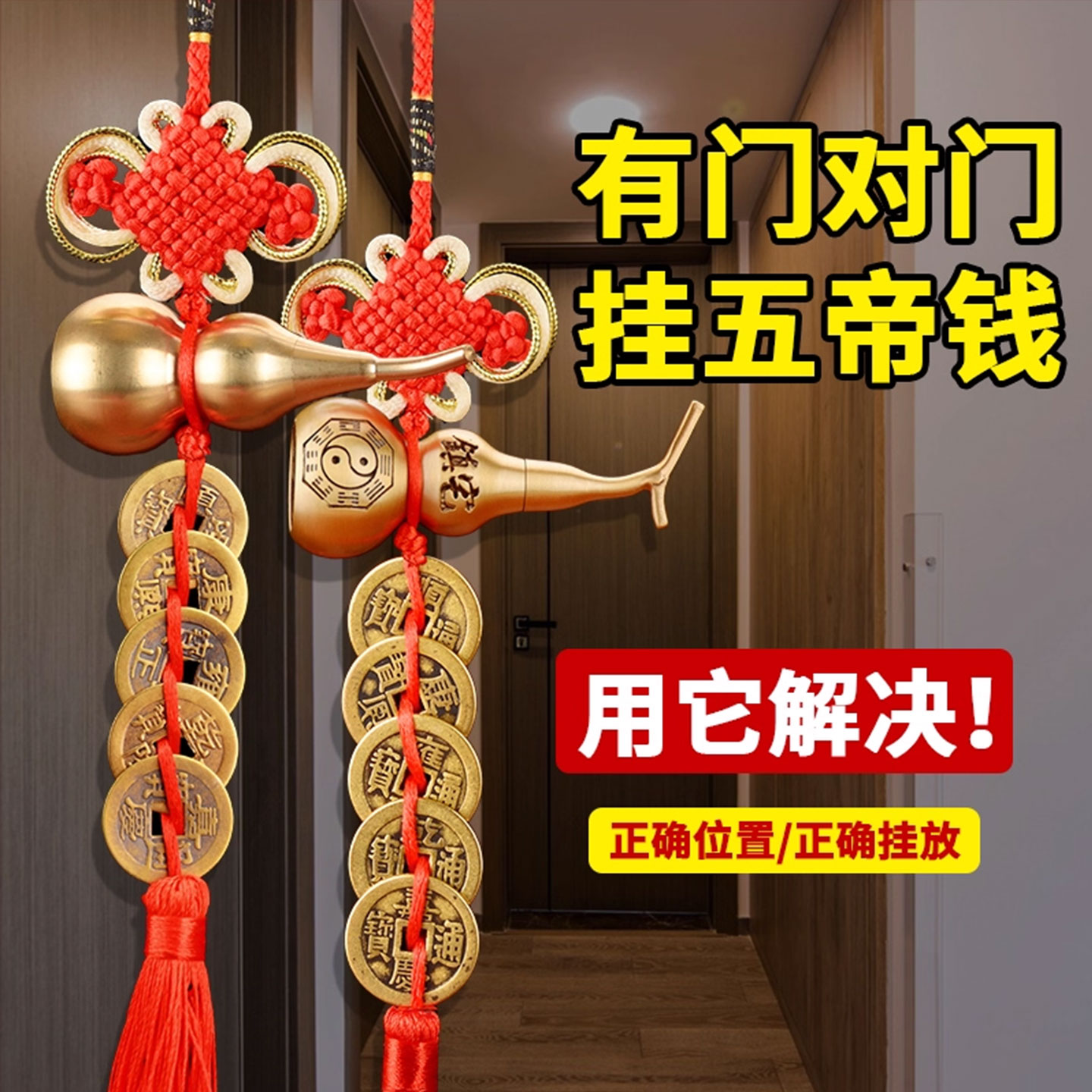 五帝钱葫芦挂件门对门真品铜葫芦卧室窗户铜钱古币中国吉祥结挂件