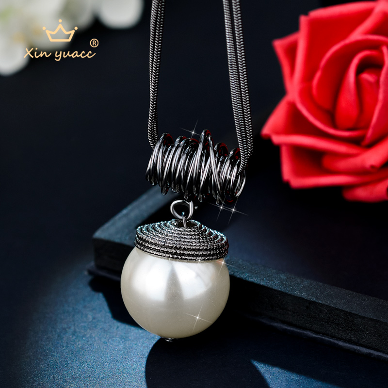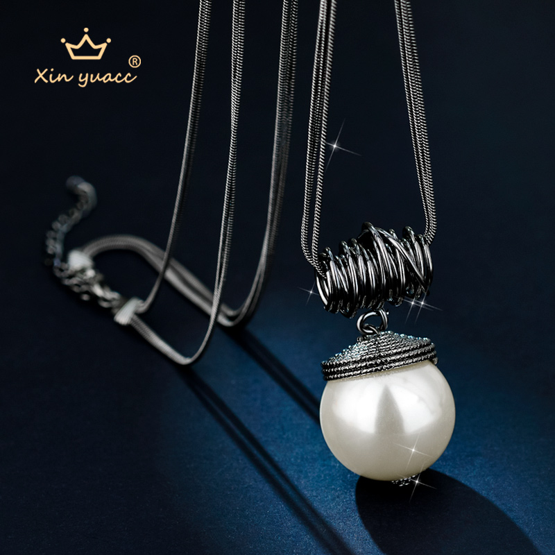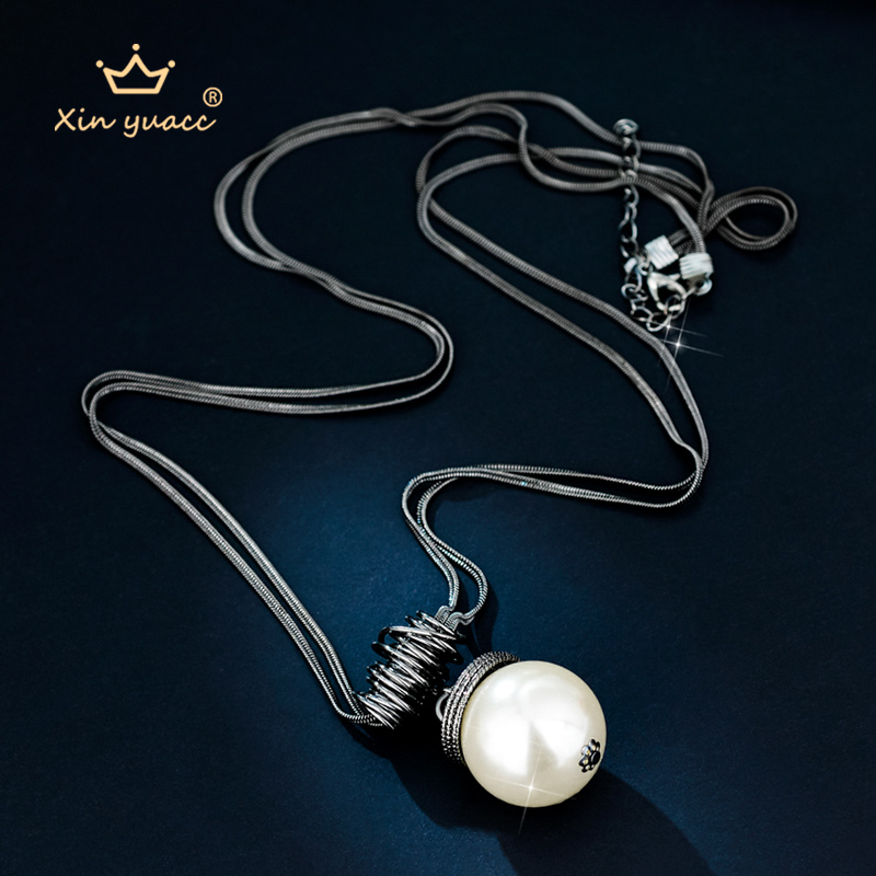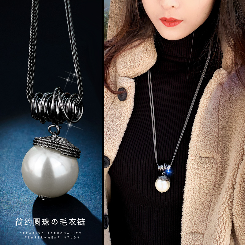 欧美个性复古毛衣链长款大吊坠仿珍珠水晶项链女秋冬百搭简约配饰