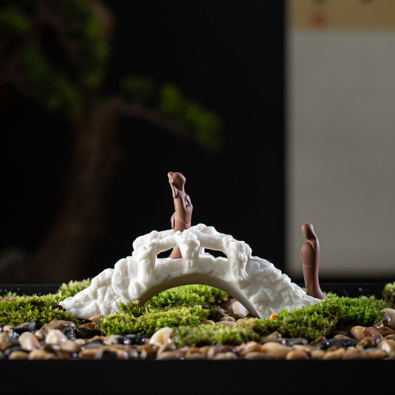 陶瓷微景观盆景沙盘假山摆件复古小桥流水石拱桥盆栽鱼缸造景配件