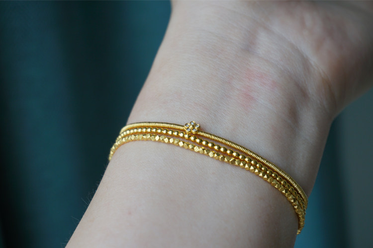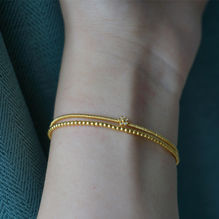 梅花钻石小花手链 古法手工工艺金圈手镯定制简约国潮叠戴气质