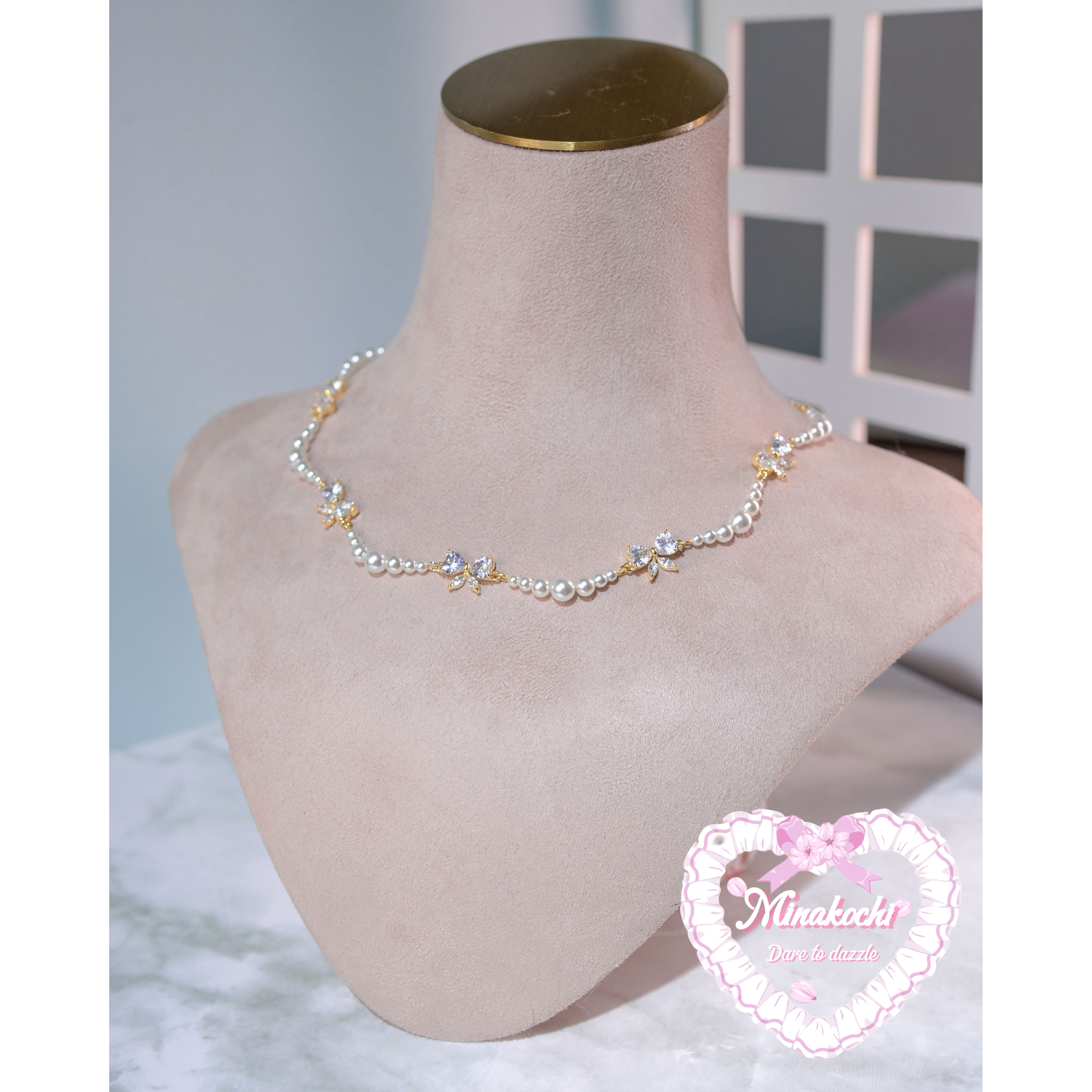 “珠羽蝶”蝴蝶结圆珠花瓣领少女华丽感项链Minakochi米娜可可