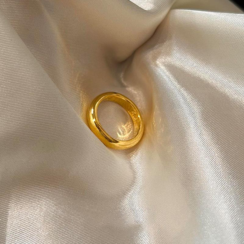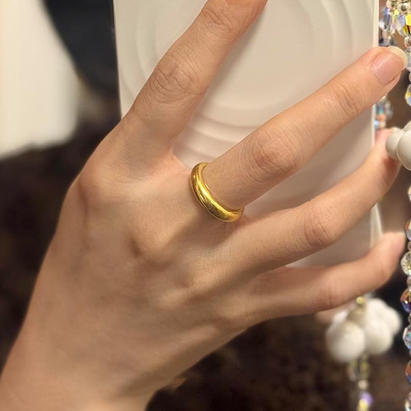 金色亮面泥鳅背素圈戒指女士小众设计高级感简约复古轻奢尾戒指环