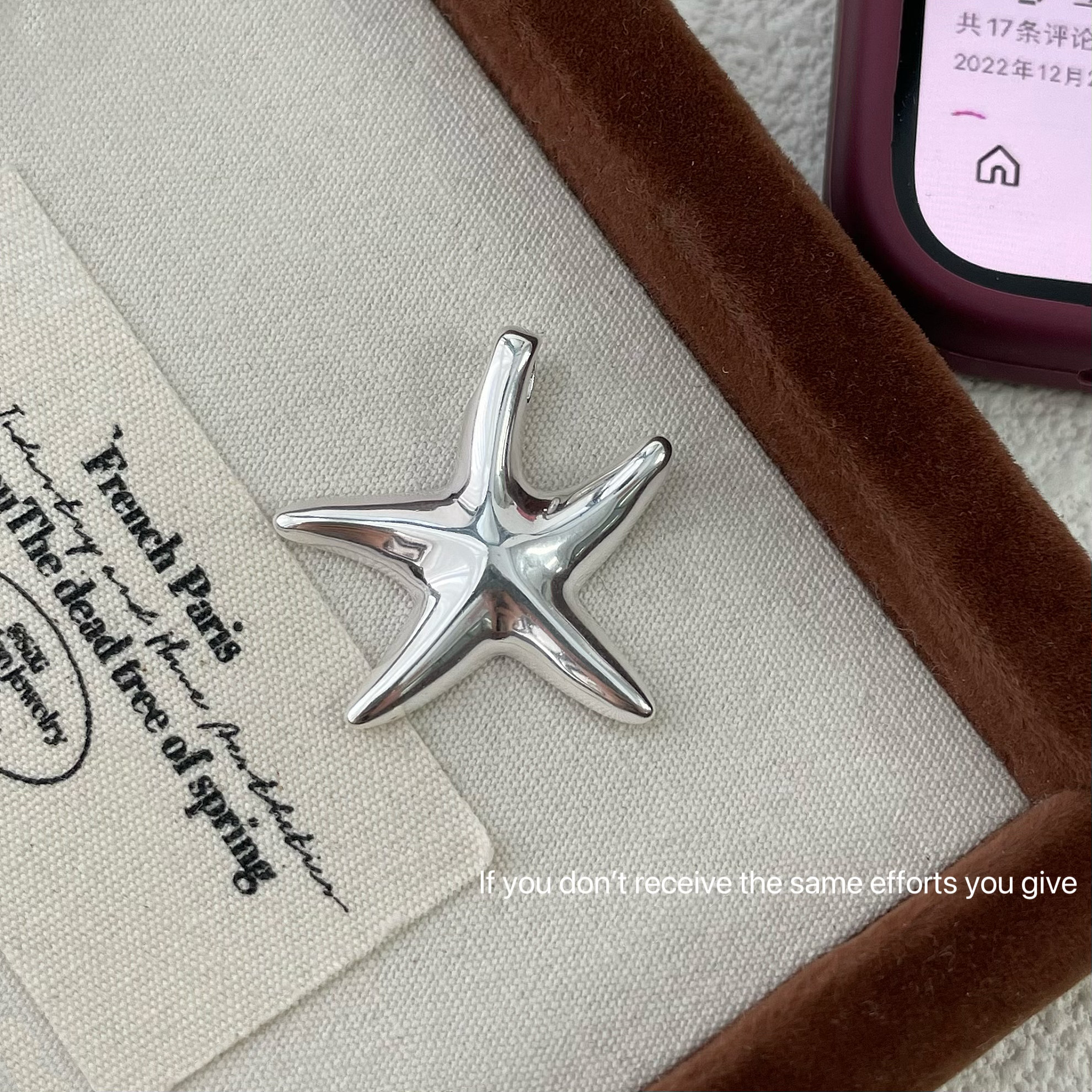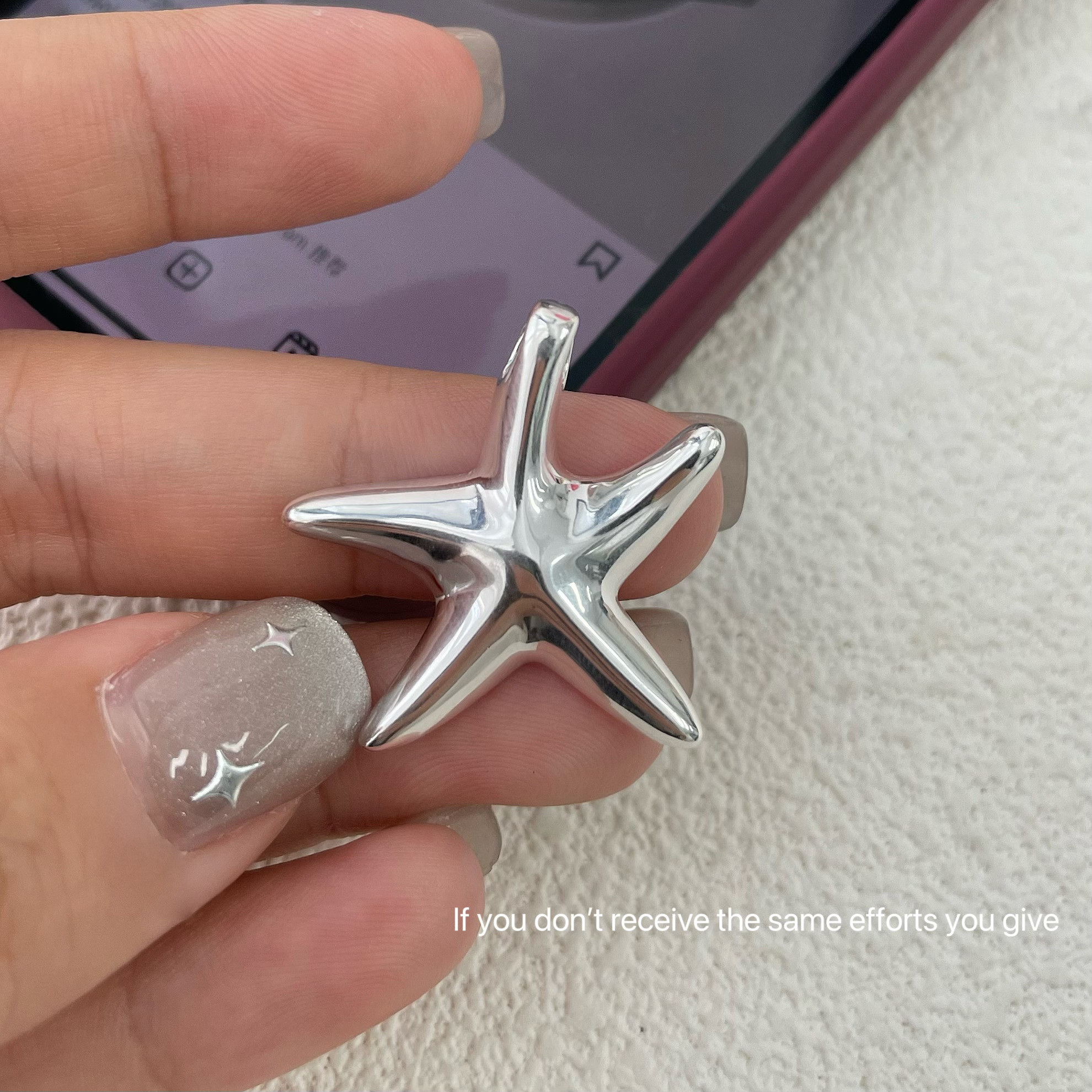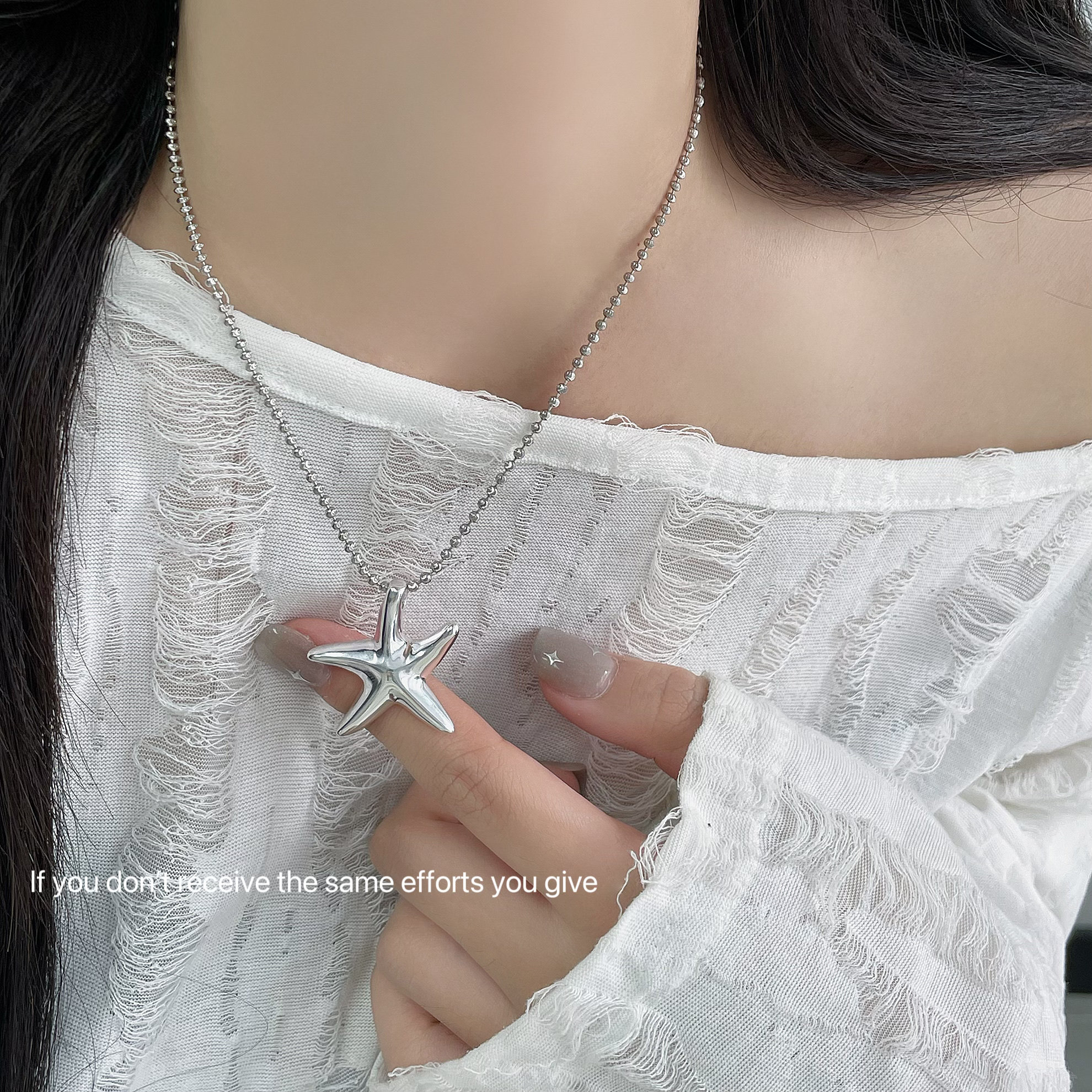 S925纯银不规则光面海星吊坠项链简约个性港风韩版ins小众设计