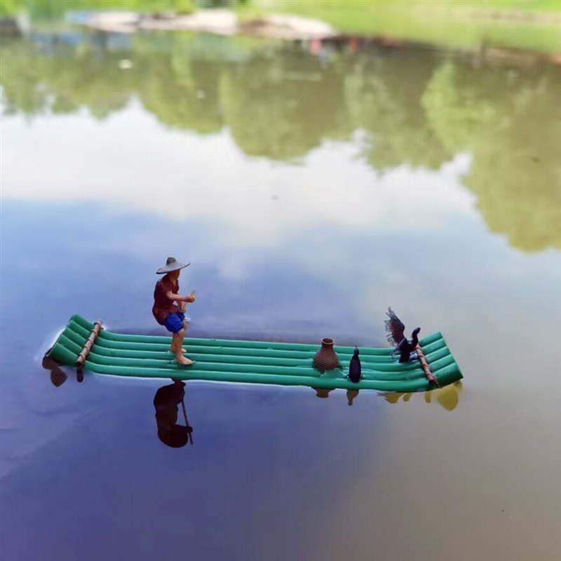 竹筏船模型假山盆景吸水石配件迷你摆件饰品可下水漂浮江南小木船