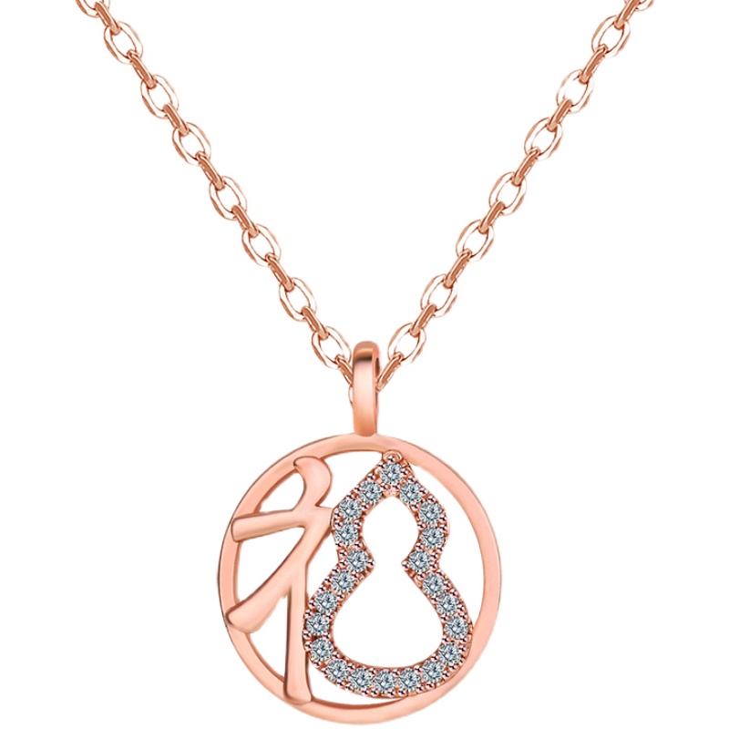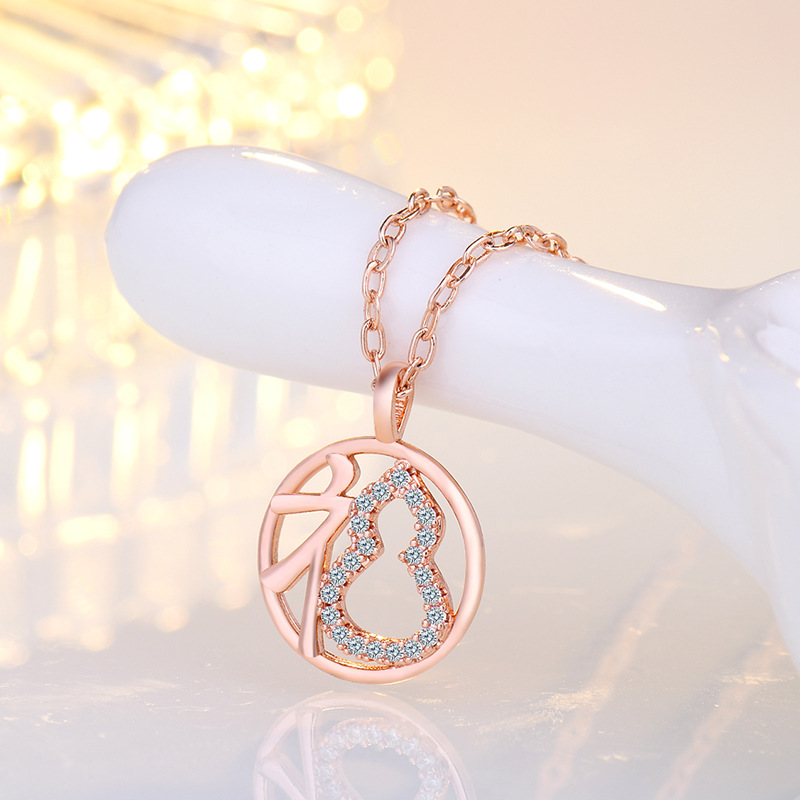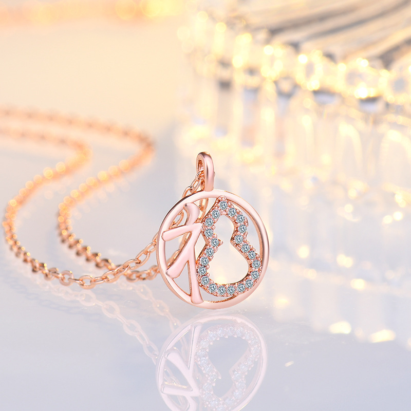 新款简约福字吉祥s925镀银项链吊坠个性国风葫芦项链女时尚锁骨链