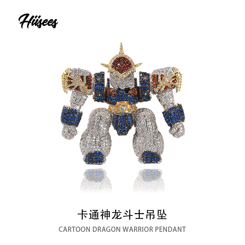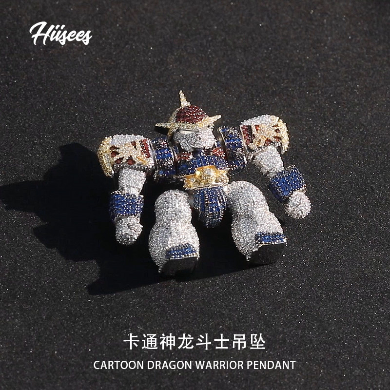 HIISEES卡通神龙斗士吊坠男百搭高级感铜微镶锆石机器人嘻哈项链