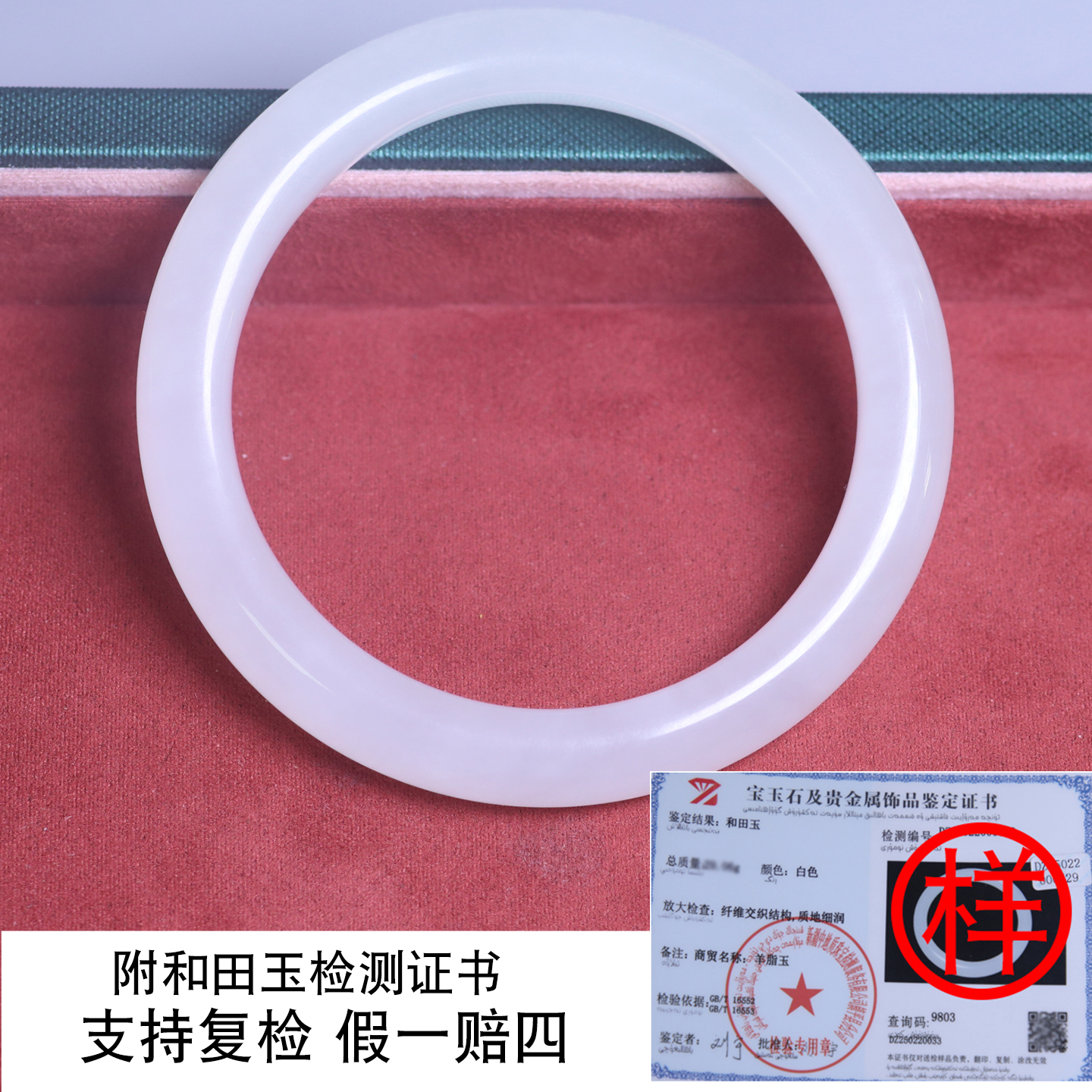 珪宝56.8mm和田玉羊脂玉小宽条手镯女款玉镯子天然玉石带证书礼物
