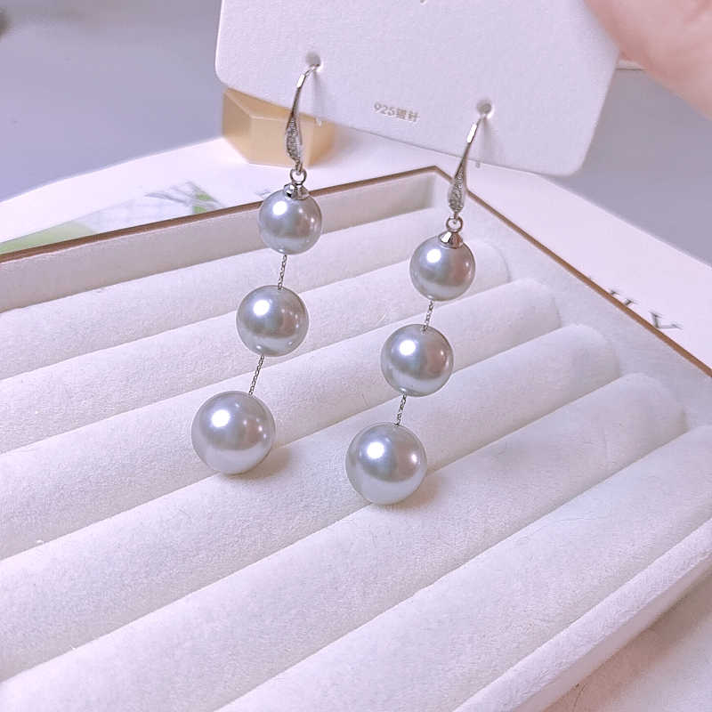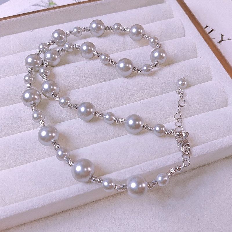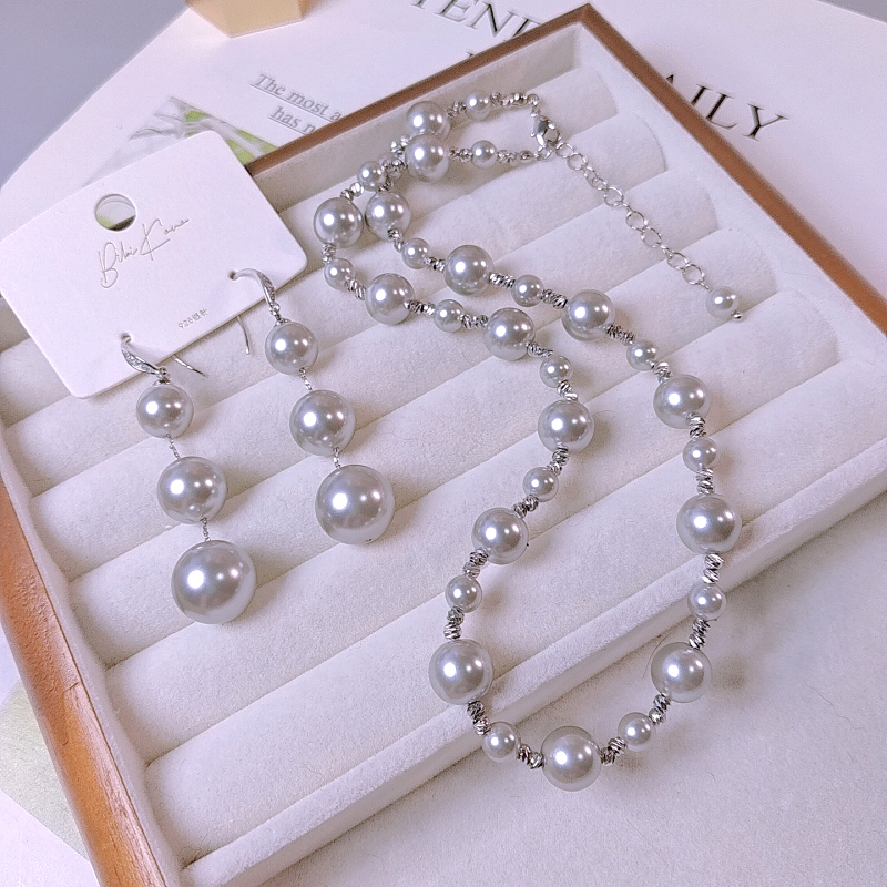 真多麻高级灰珍珠项链耳环女强光轻奢小众港风锁骨链送妈妈生日礼