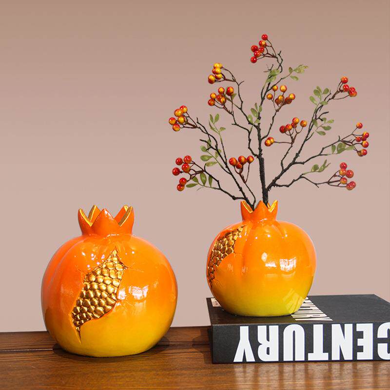 简约现代室内玄关石榴摆件家居电视柜样板房装饰树脂花瓶插花花器