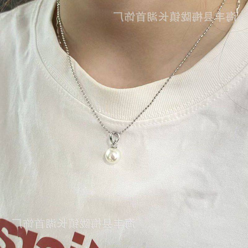 人造冷光锁骨吊坠TDS珍珠可轻奢调节可拆卸链白水晶长项链高级澳