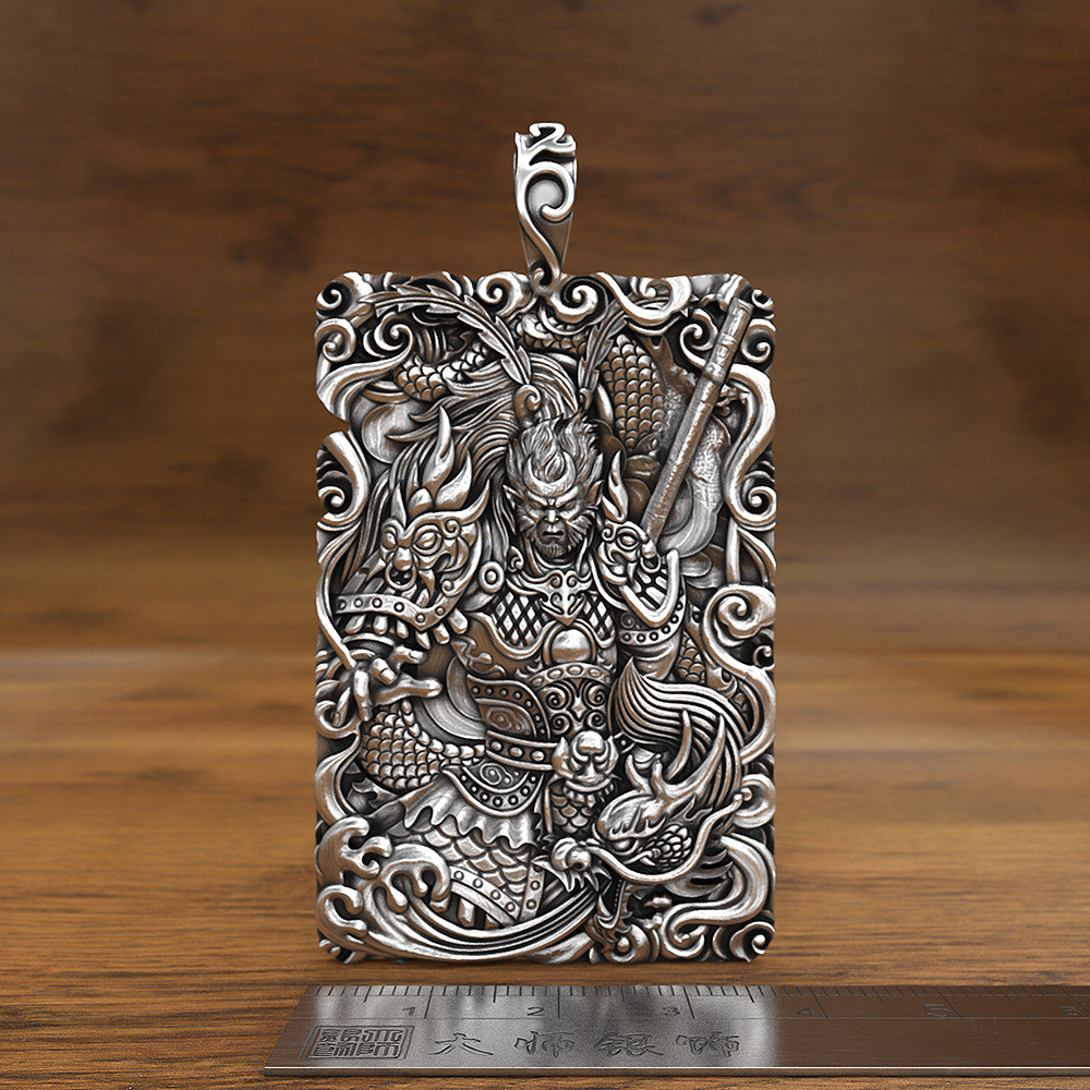 齐天大圣项链男战斗胜佛实心吊坠s999纯银挂坠复古孙悟空霸气银牌