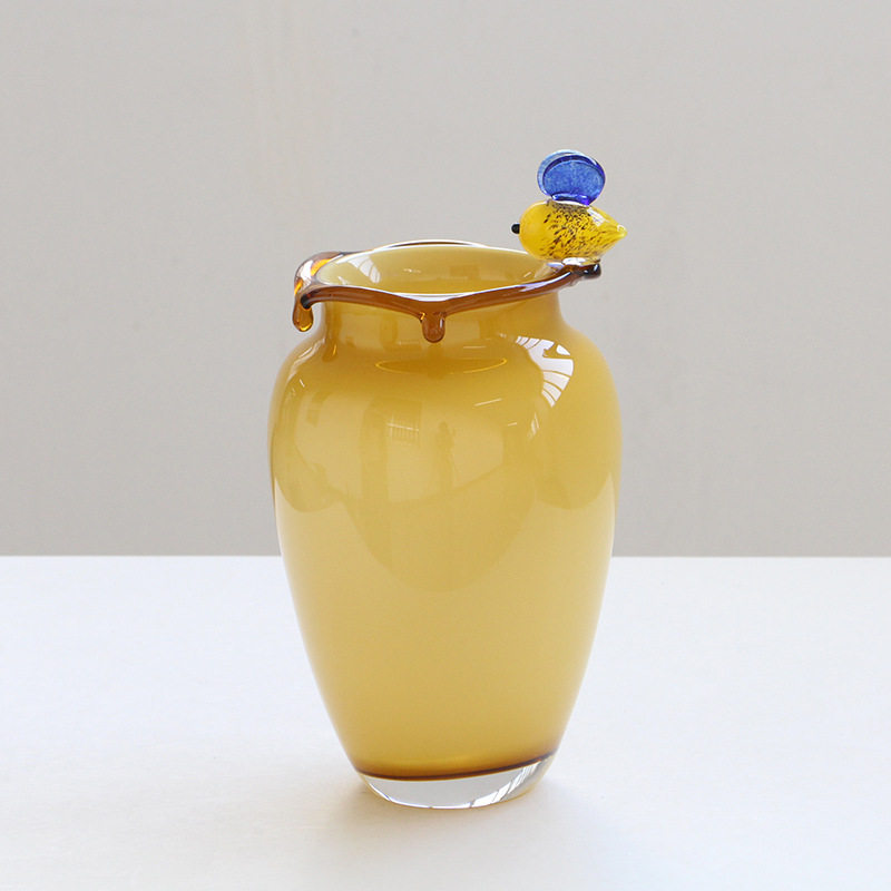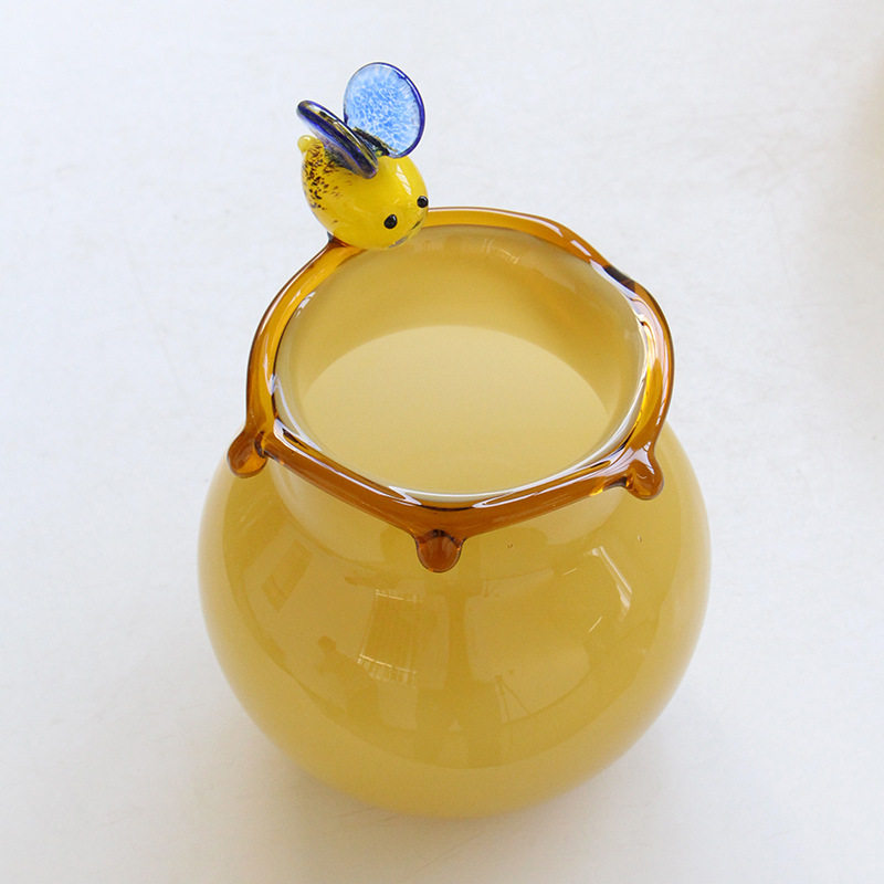 创意黄色蜜蜂装饰玻璃花瓶餐厅客厅插花水培家居装饰摆件北欧