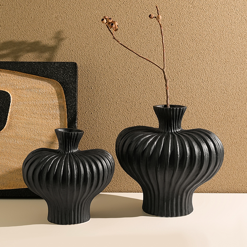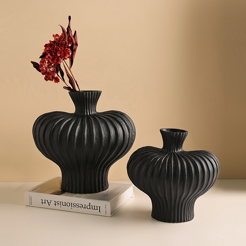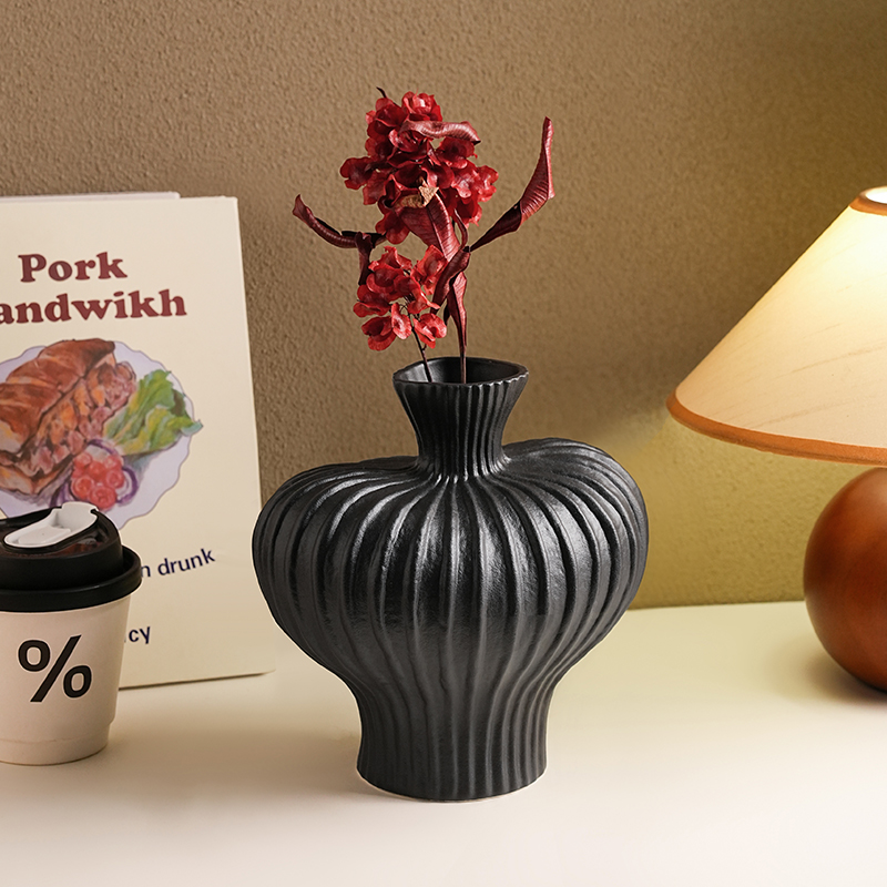 贝汉美现代简约灯笼花瓶摆件客厅桌面陶瓷干花插花器家居复古装饰