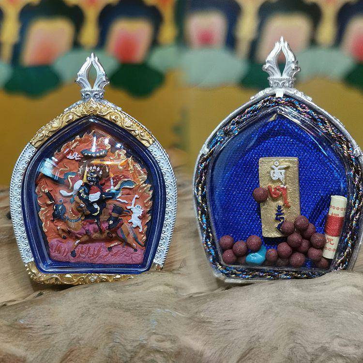 西藏矿物质彩绘擦擦佛像嘎乌盒吊坠本命佛吉祥天母随身唐卡小佛像